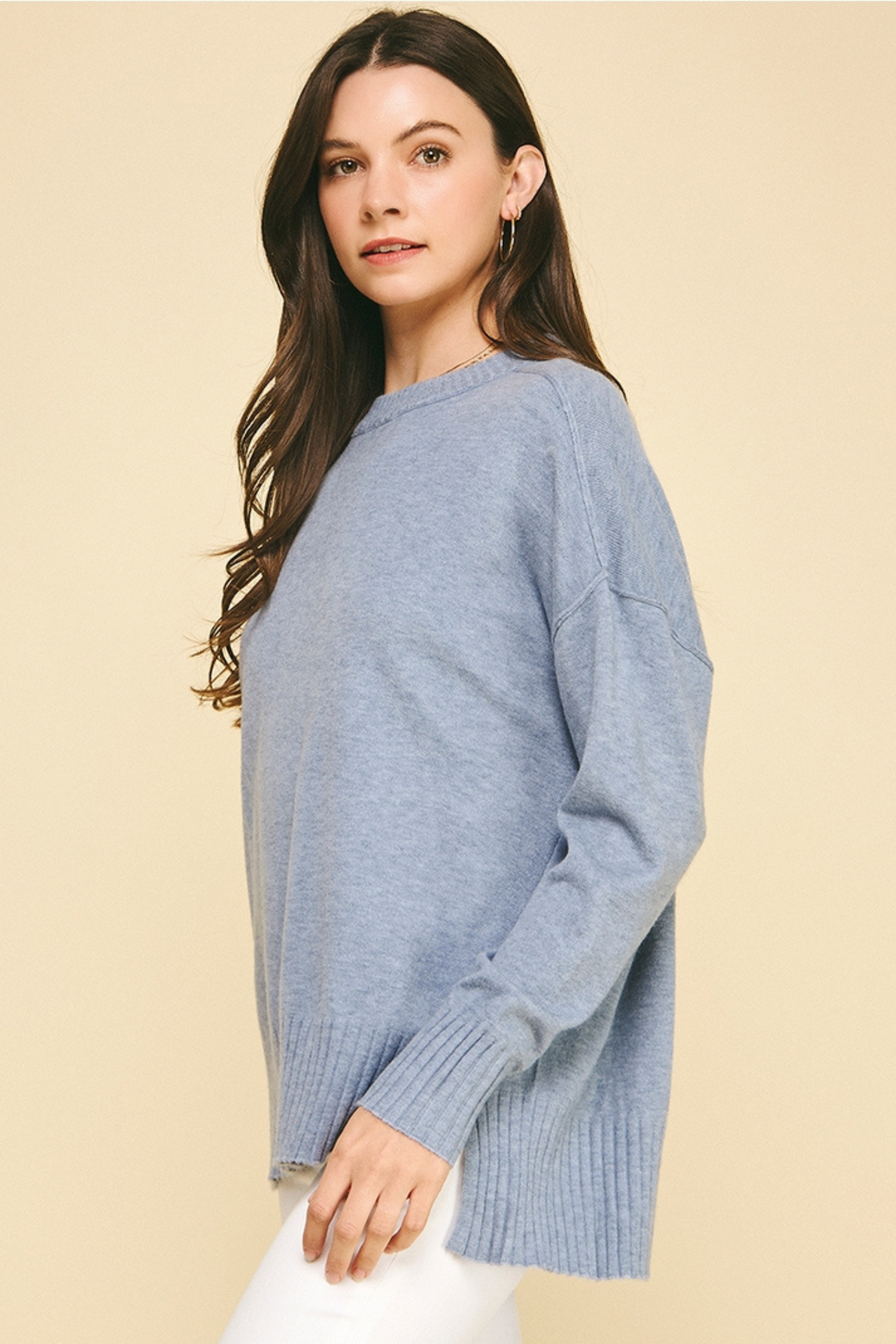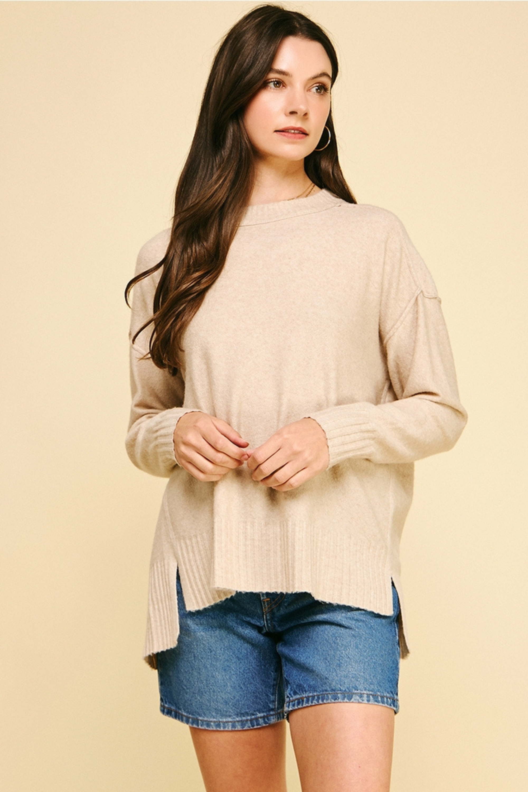 Anna Raw Edge Crew Sweater - Cream