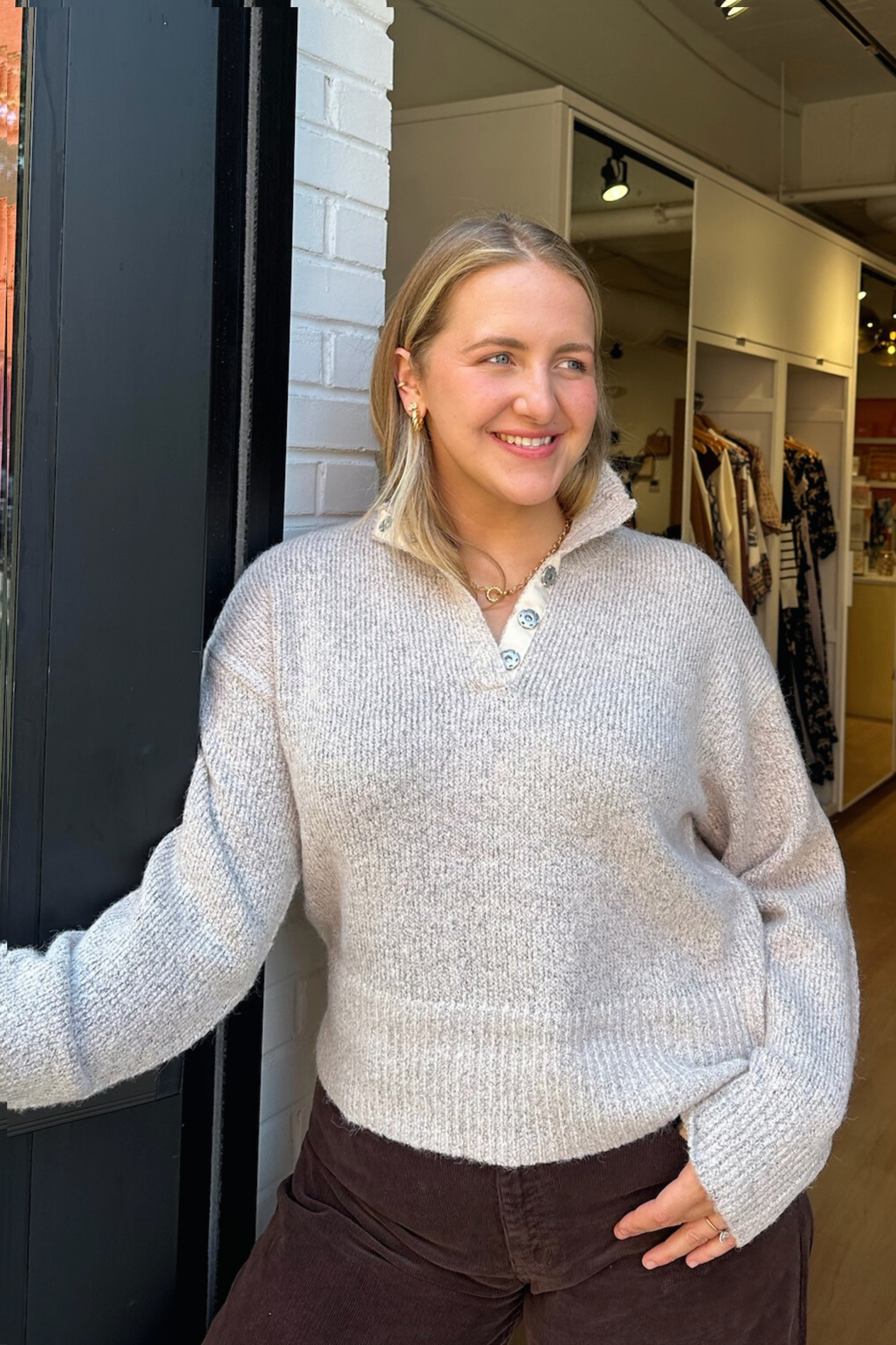 Emily Snap Henley Sweater - Oat
