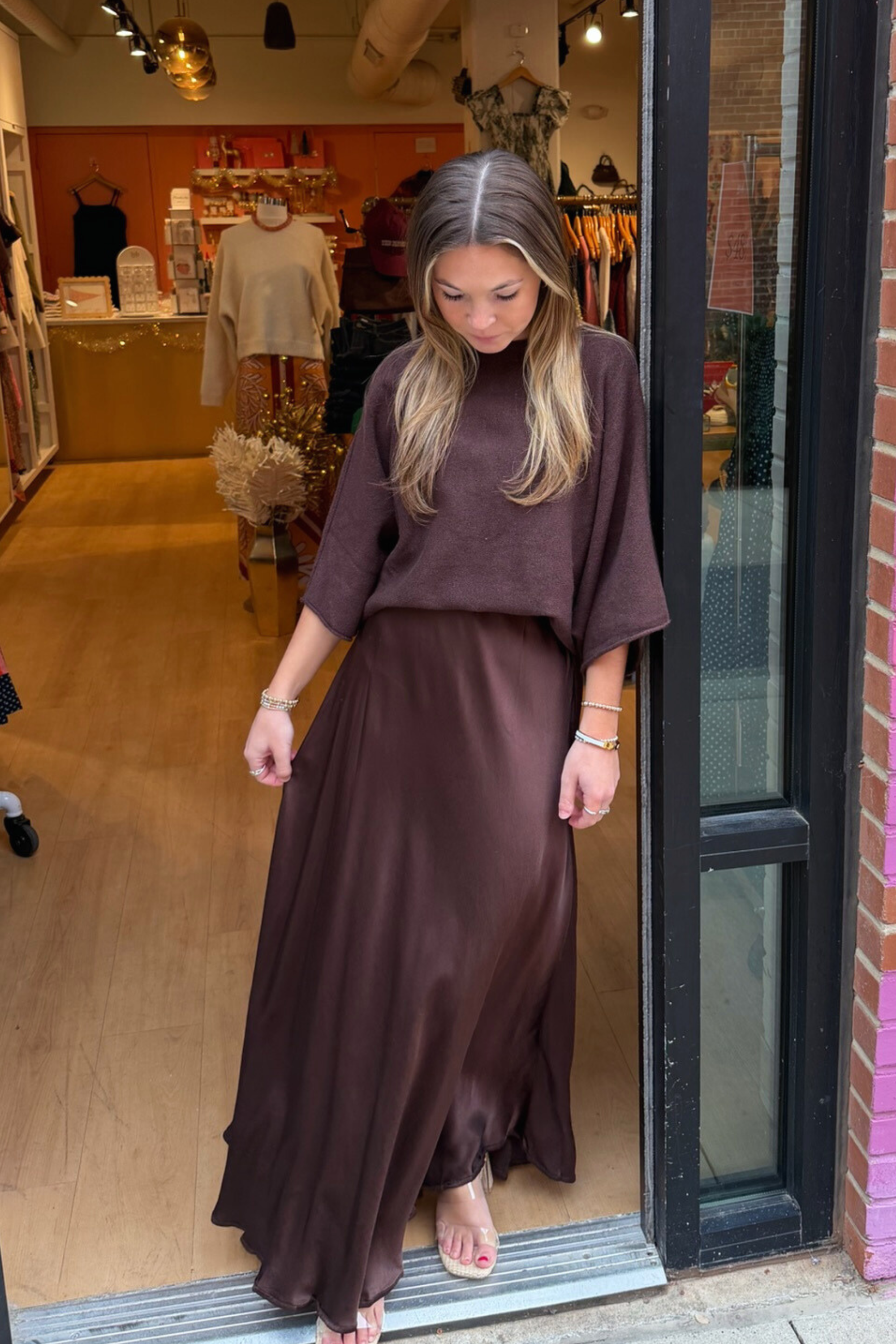 Kathy Crop Knit Flare Cozy Pant - Chocolate Brown