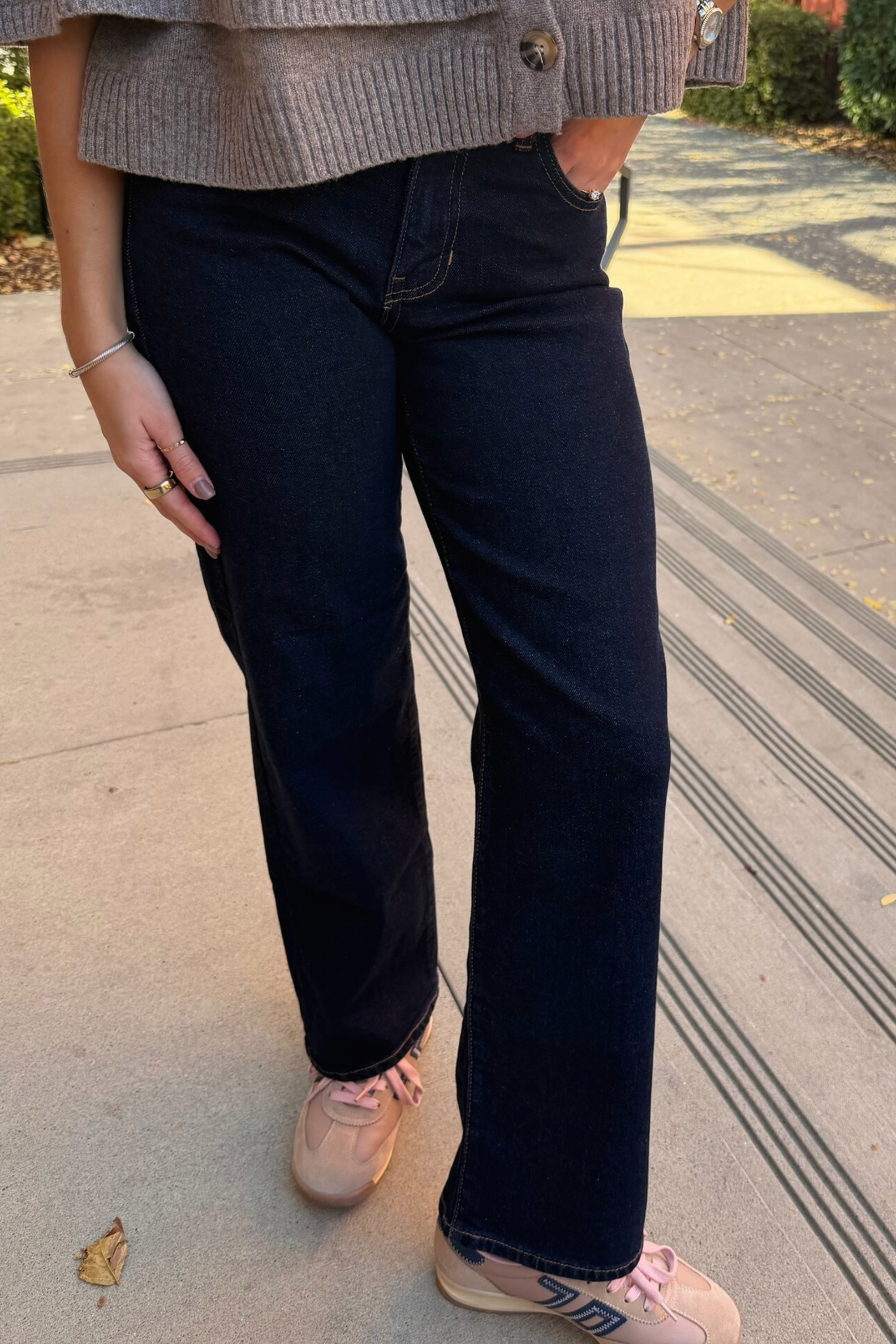 Genny Low Rise Loose Straight Jean - Dark Denim