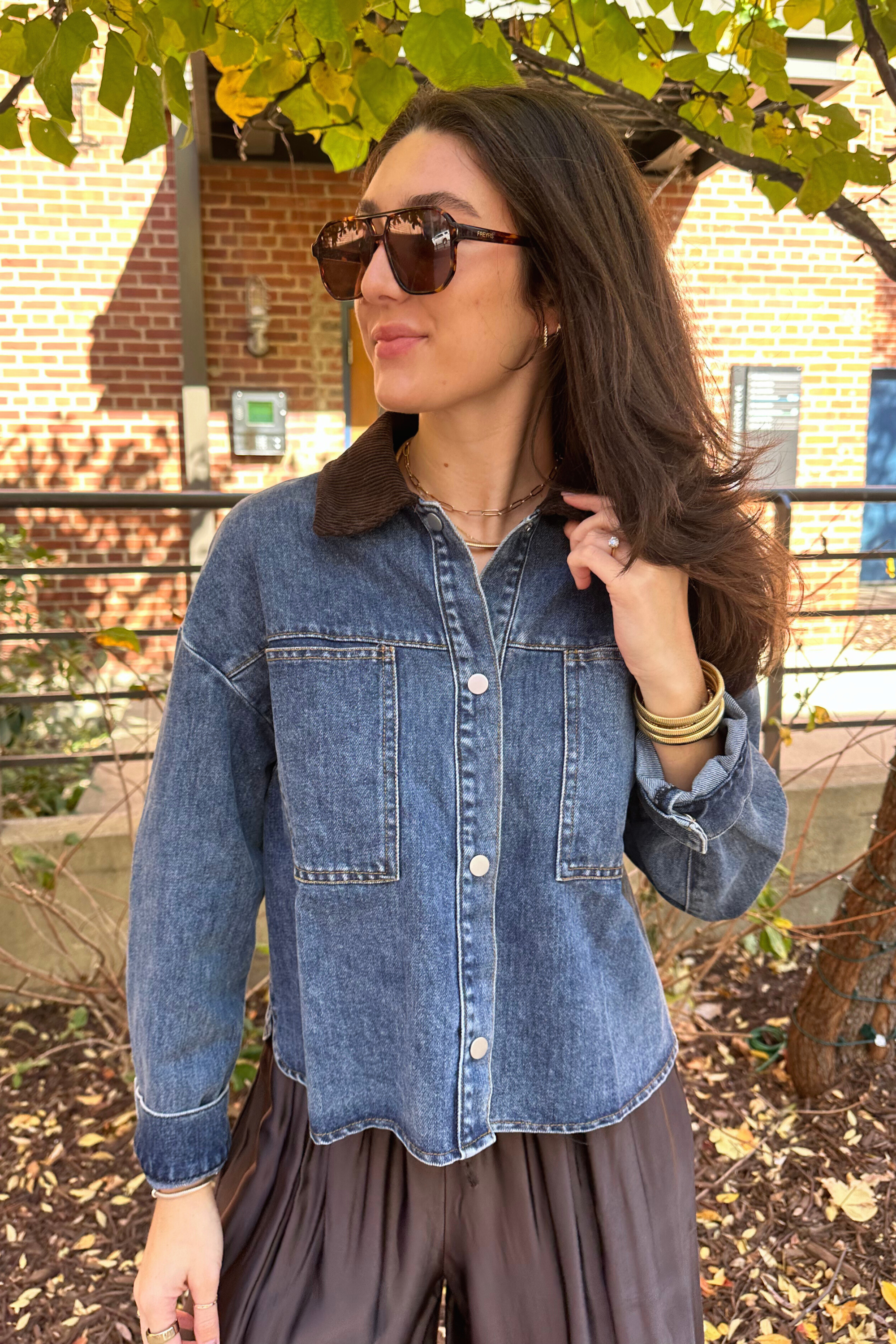 Coco Corduroy Collar Jacket - Denim/Brown