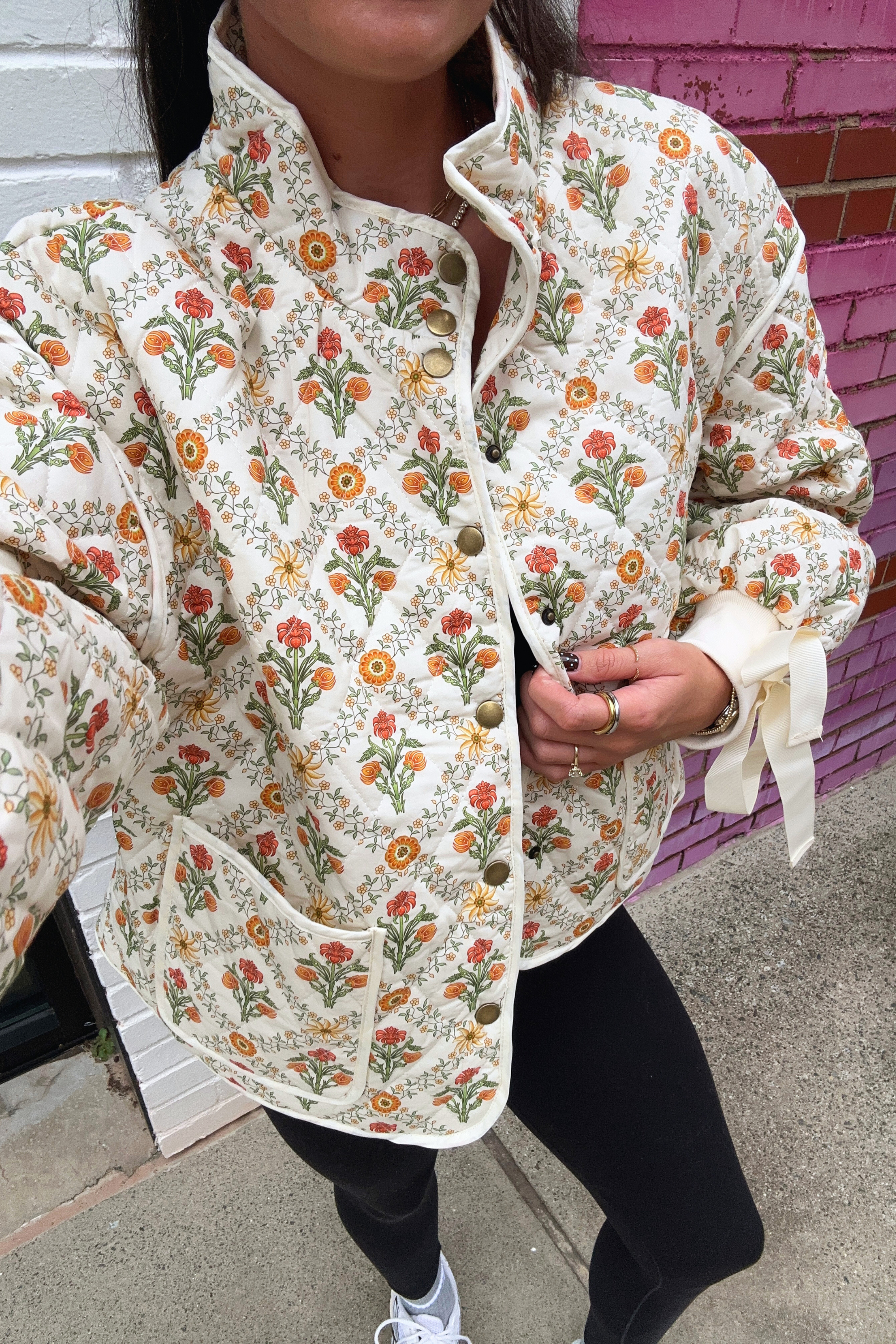 Trellis Floral Quilted Jacket - Ivory/Orange
