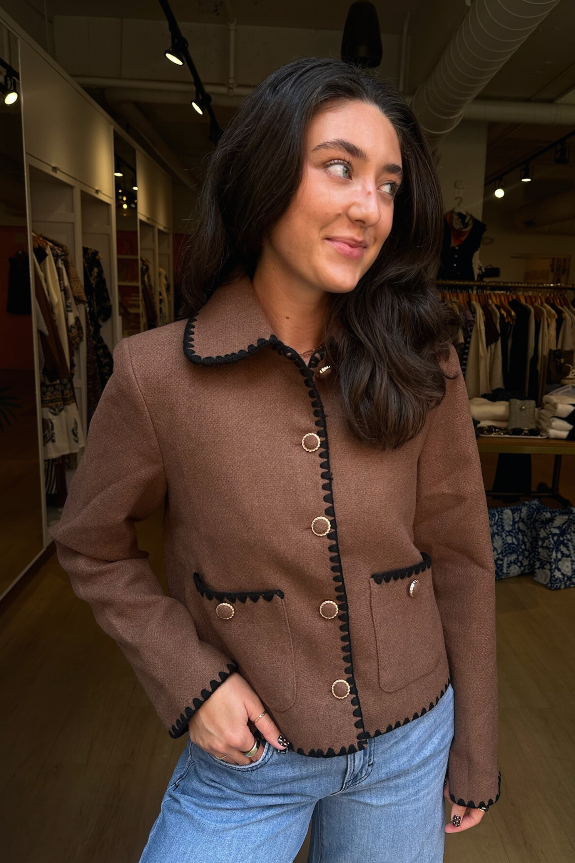 Iris Contrast Jacket - Chocolate/Black