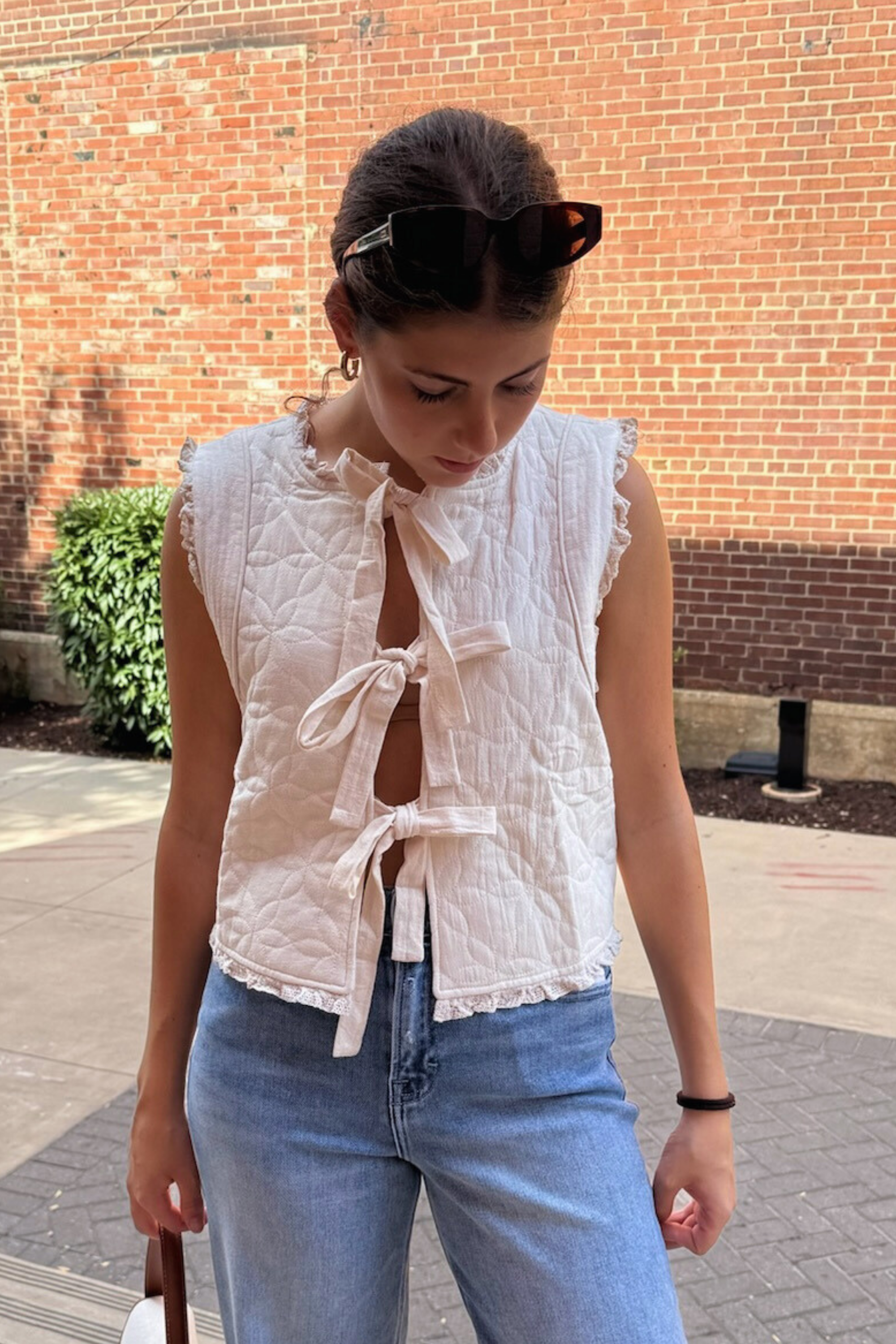 Lila Bow Vest - Ecru
