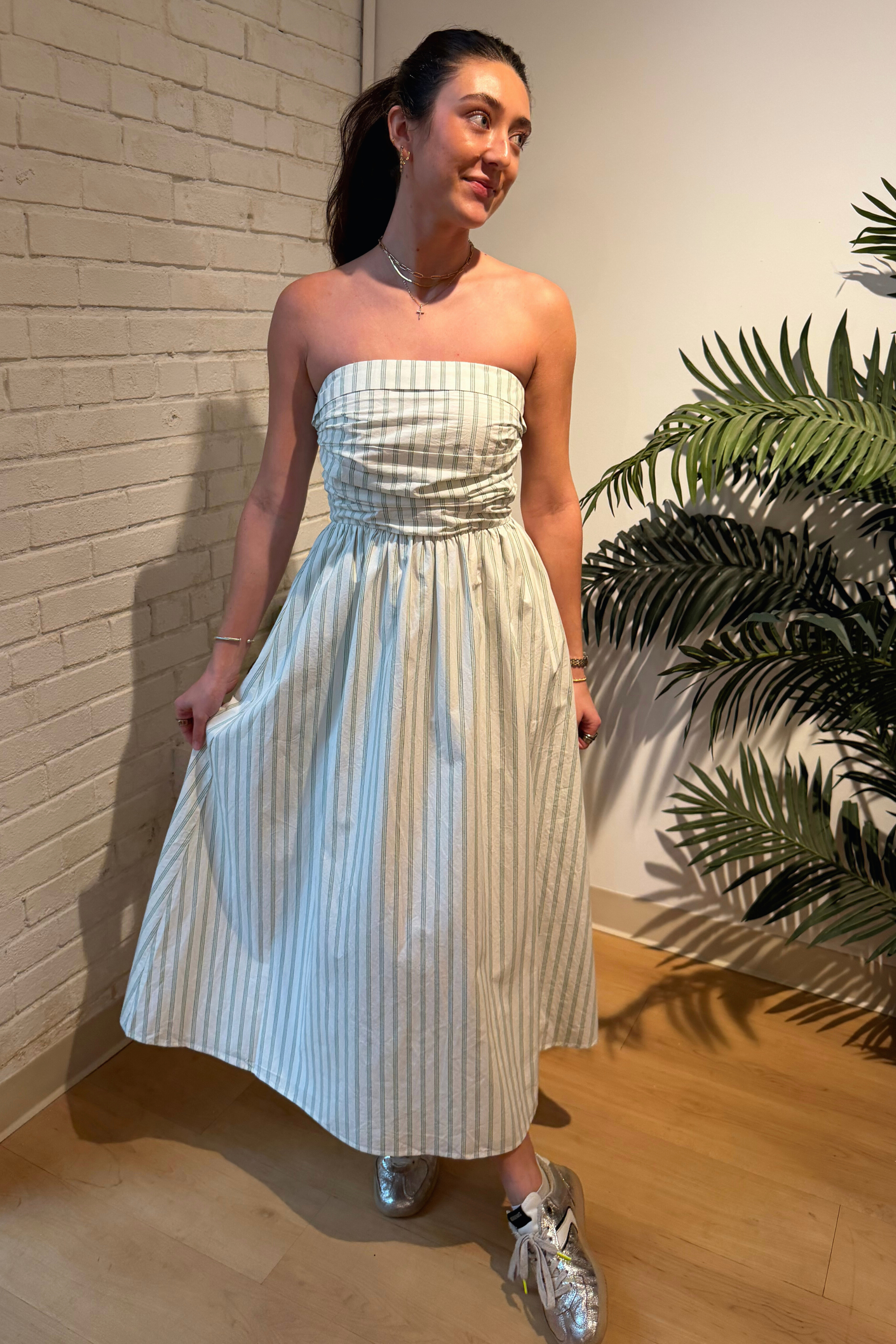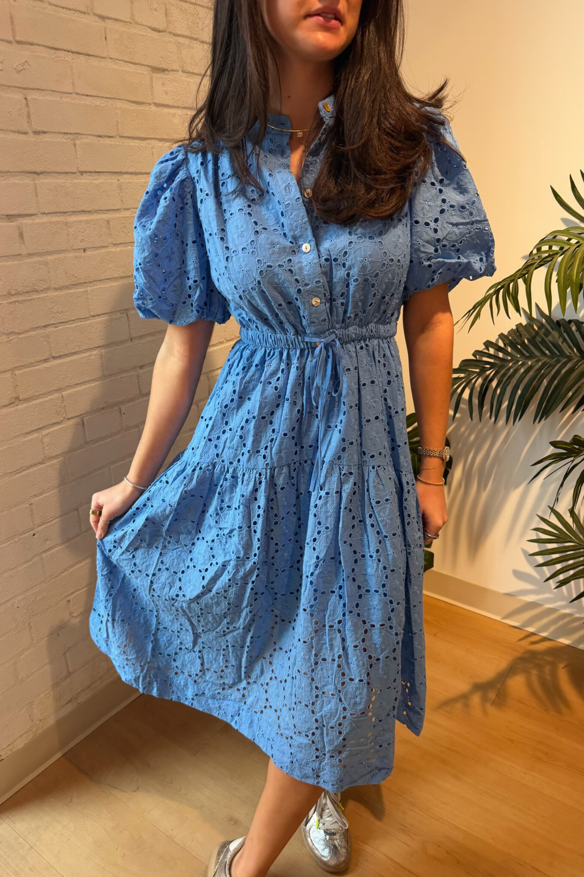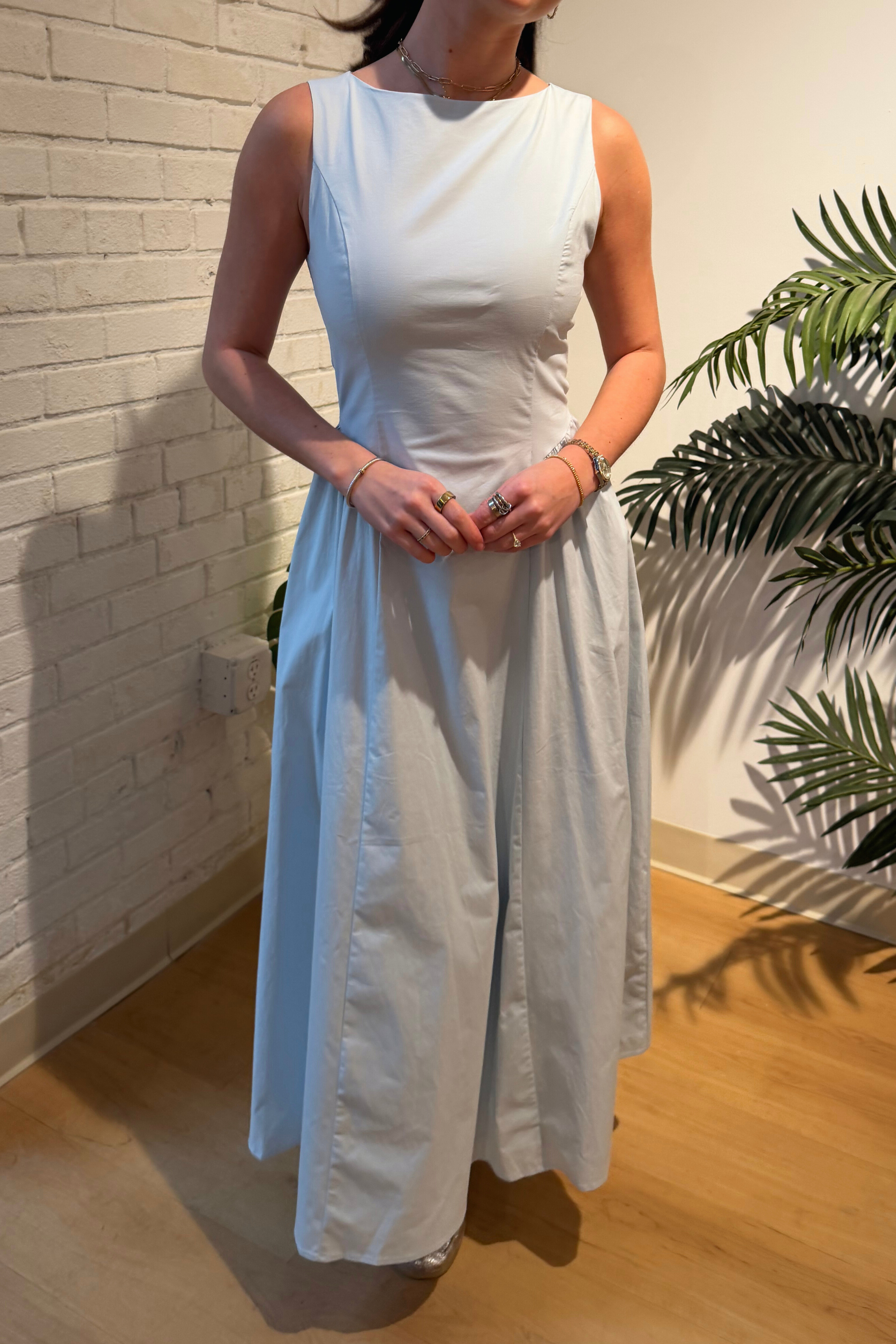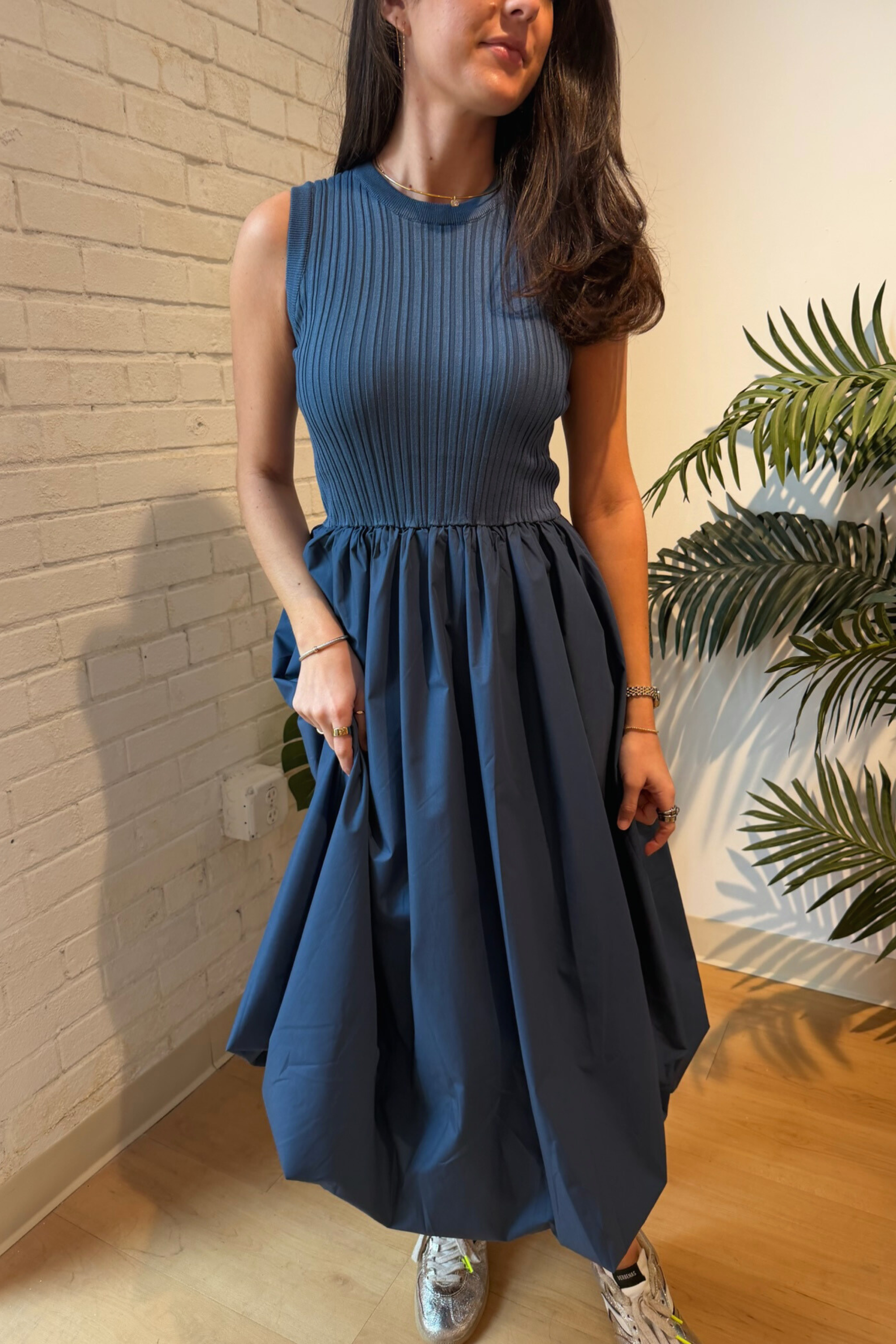 Contrast Bubble Hem Midi Dress - Dusty Blue