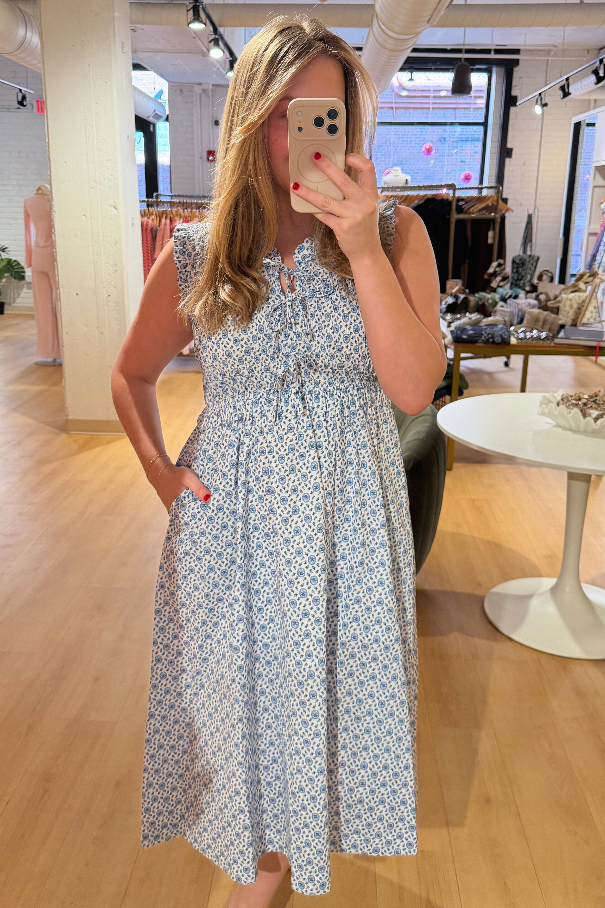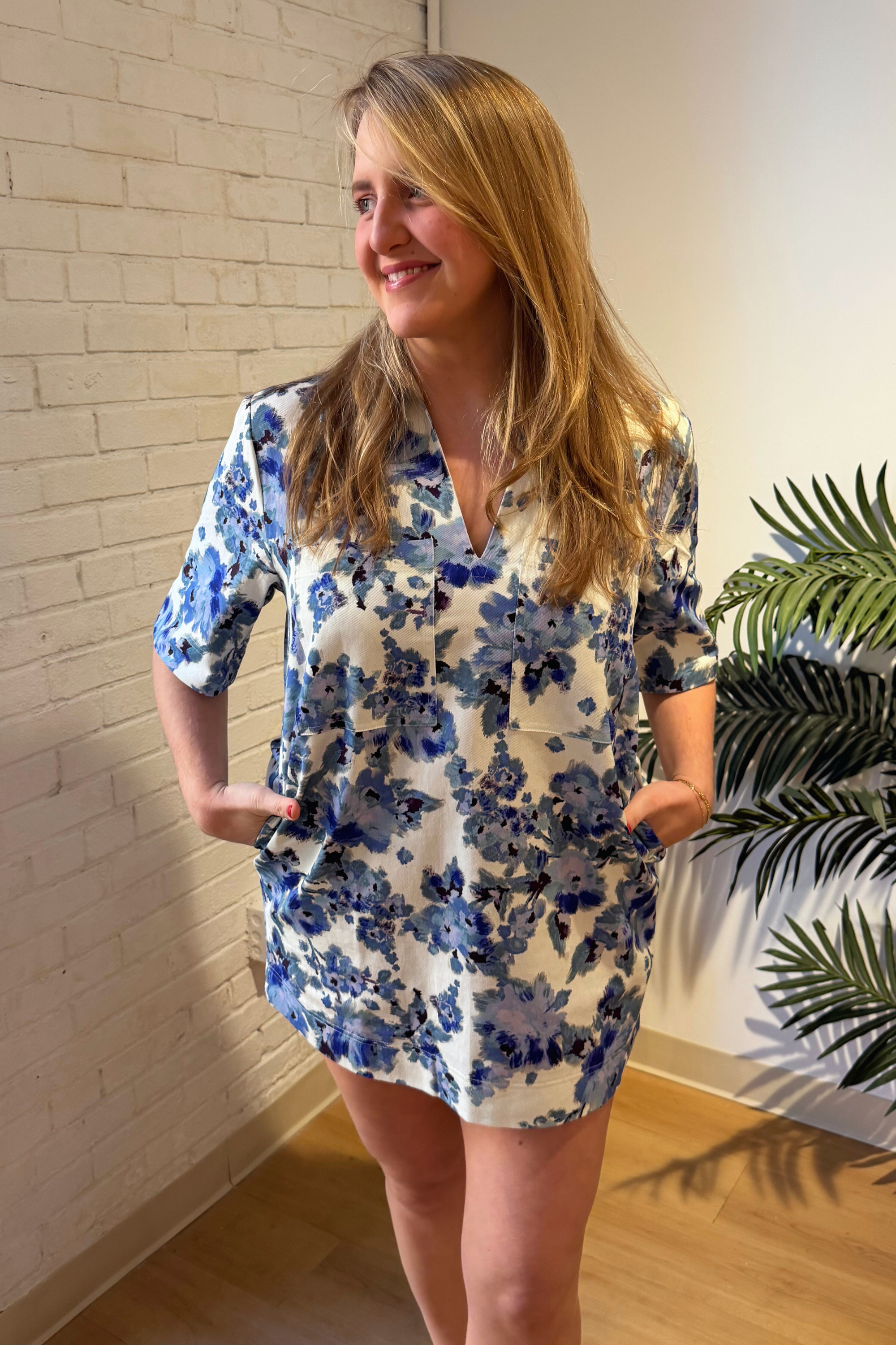 Betsy Floral Mini Dress - Natural Blue