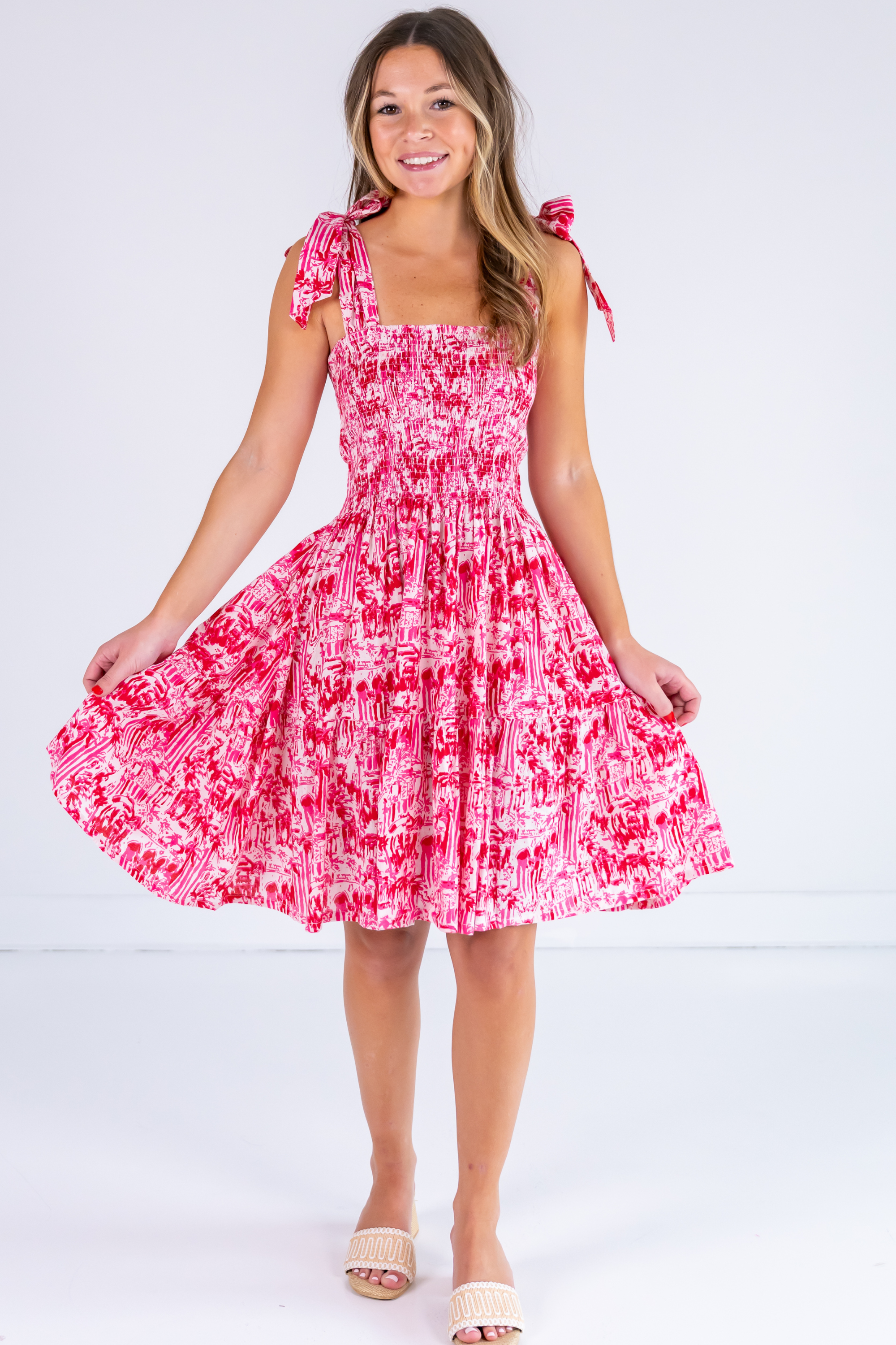 Joy Bow Mini Dress - Poppy Mix Hot Pink