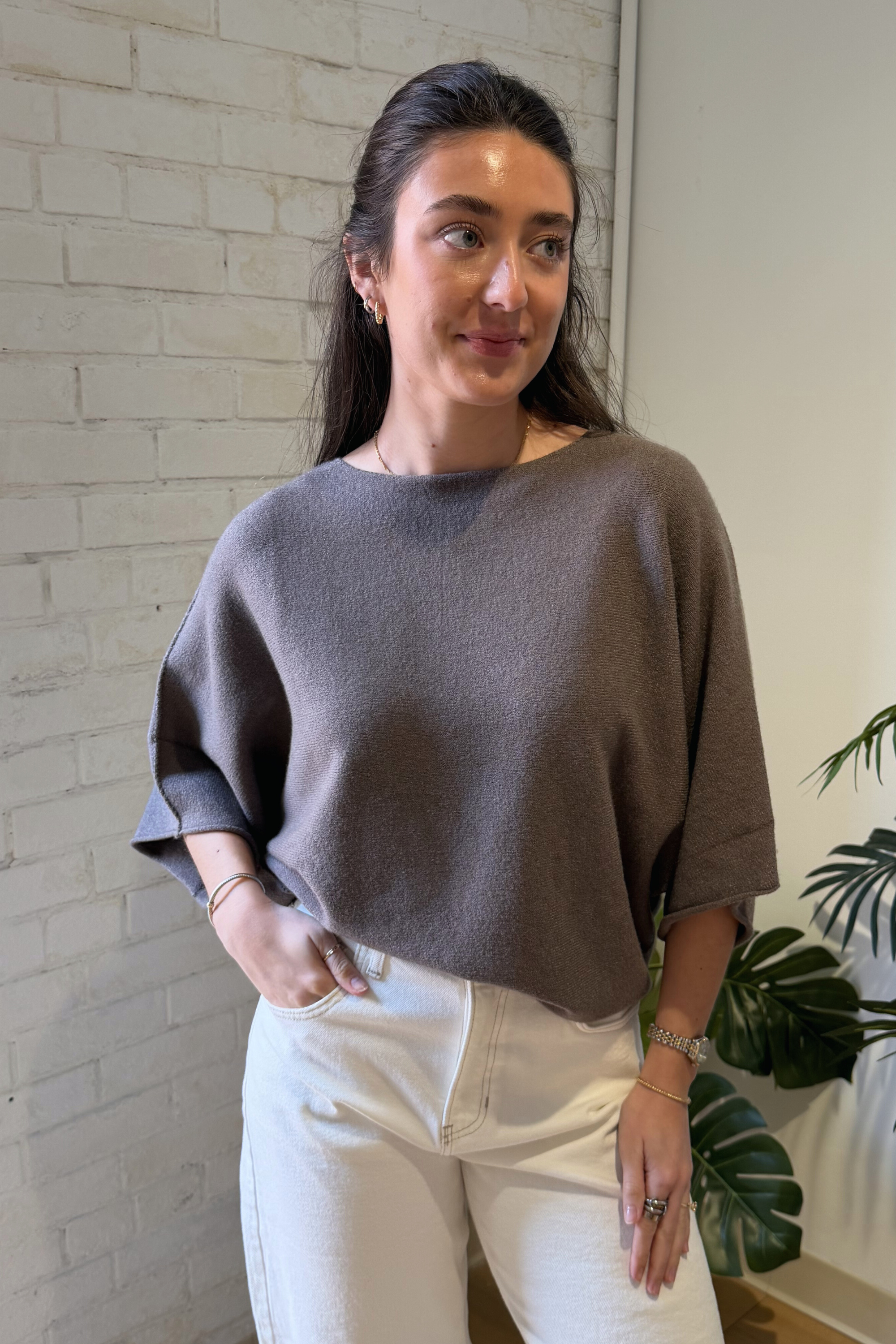 Mia Crewneck Batwing Sweater - Dark Mocha