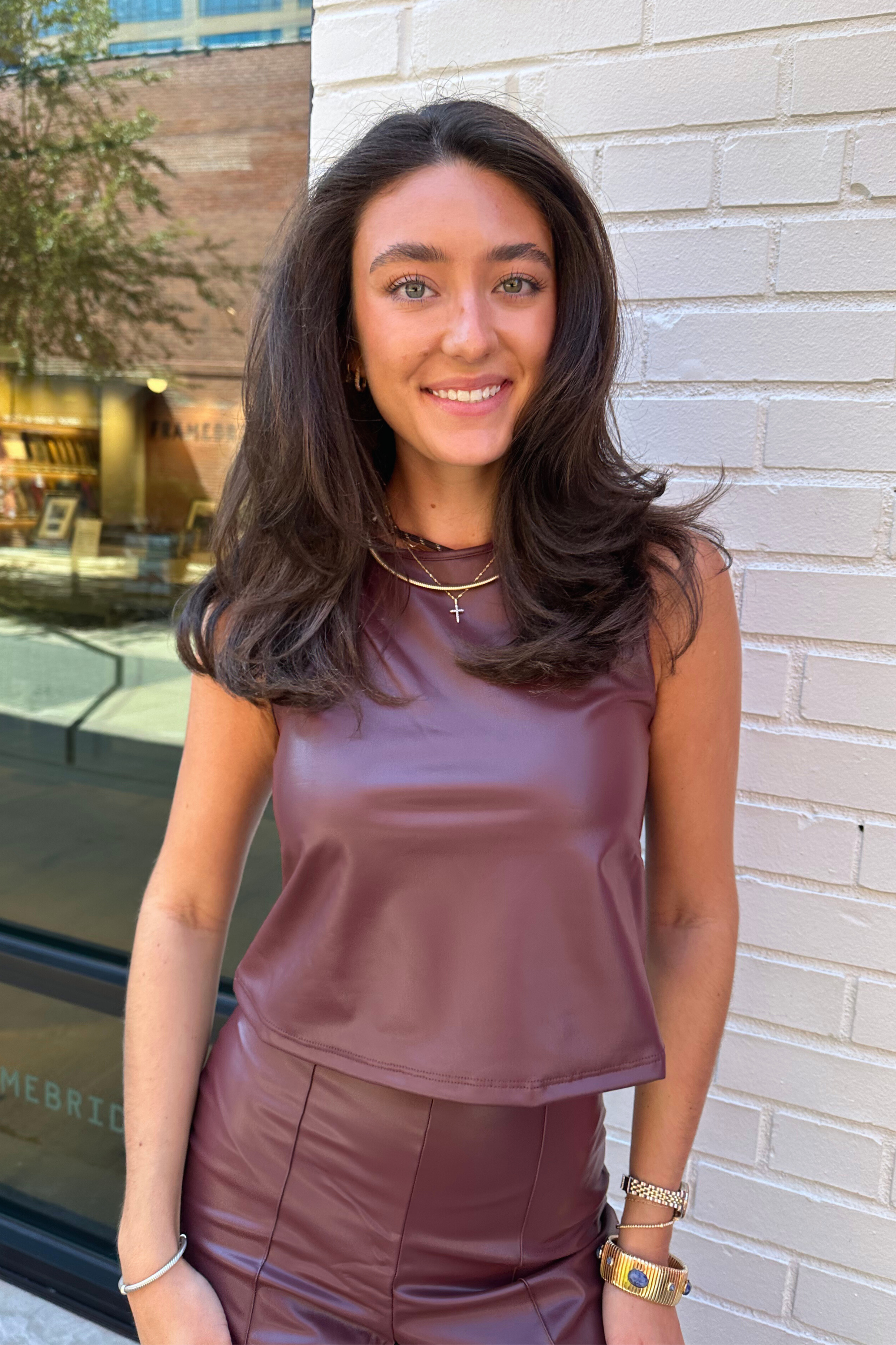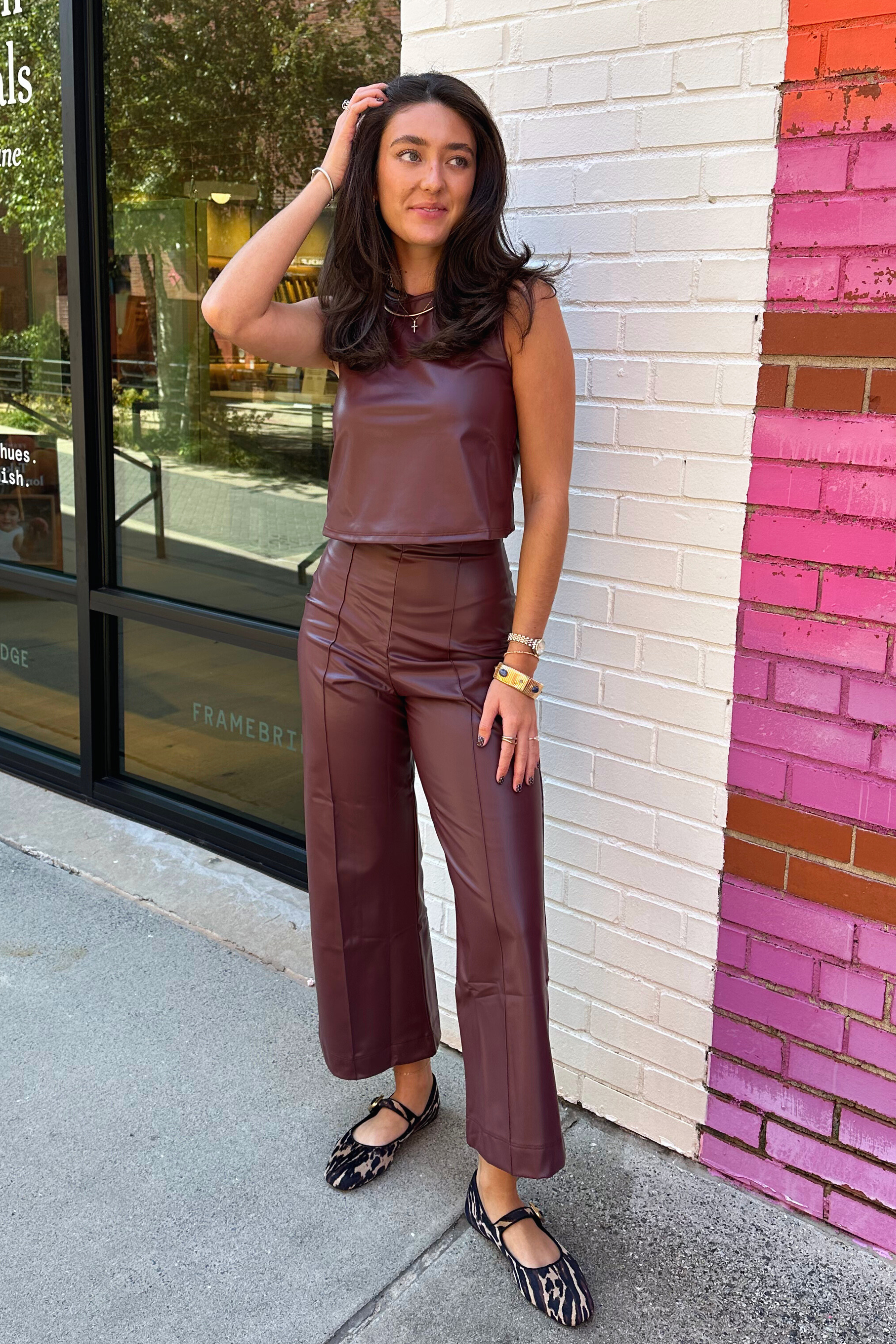 Victoria Vegan Leather Straight Leg Pant - Oxblood