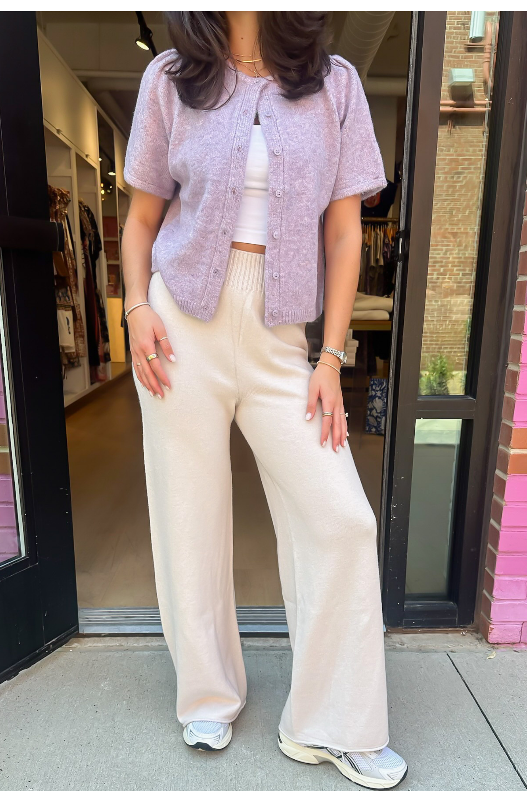 Kathy Crop Knit Flare Cozy Pant - Beige
