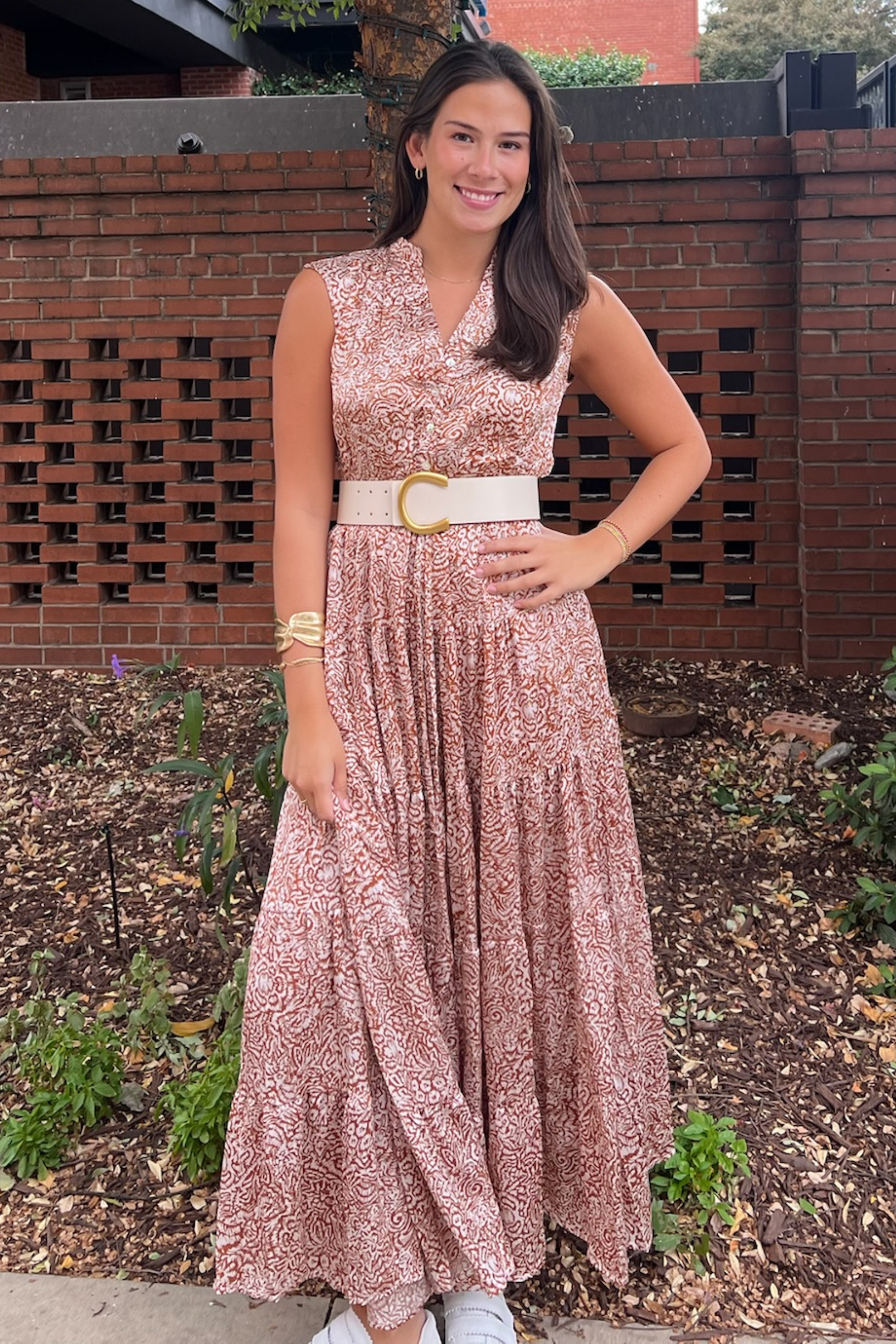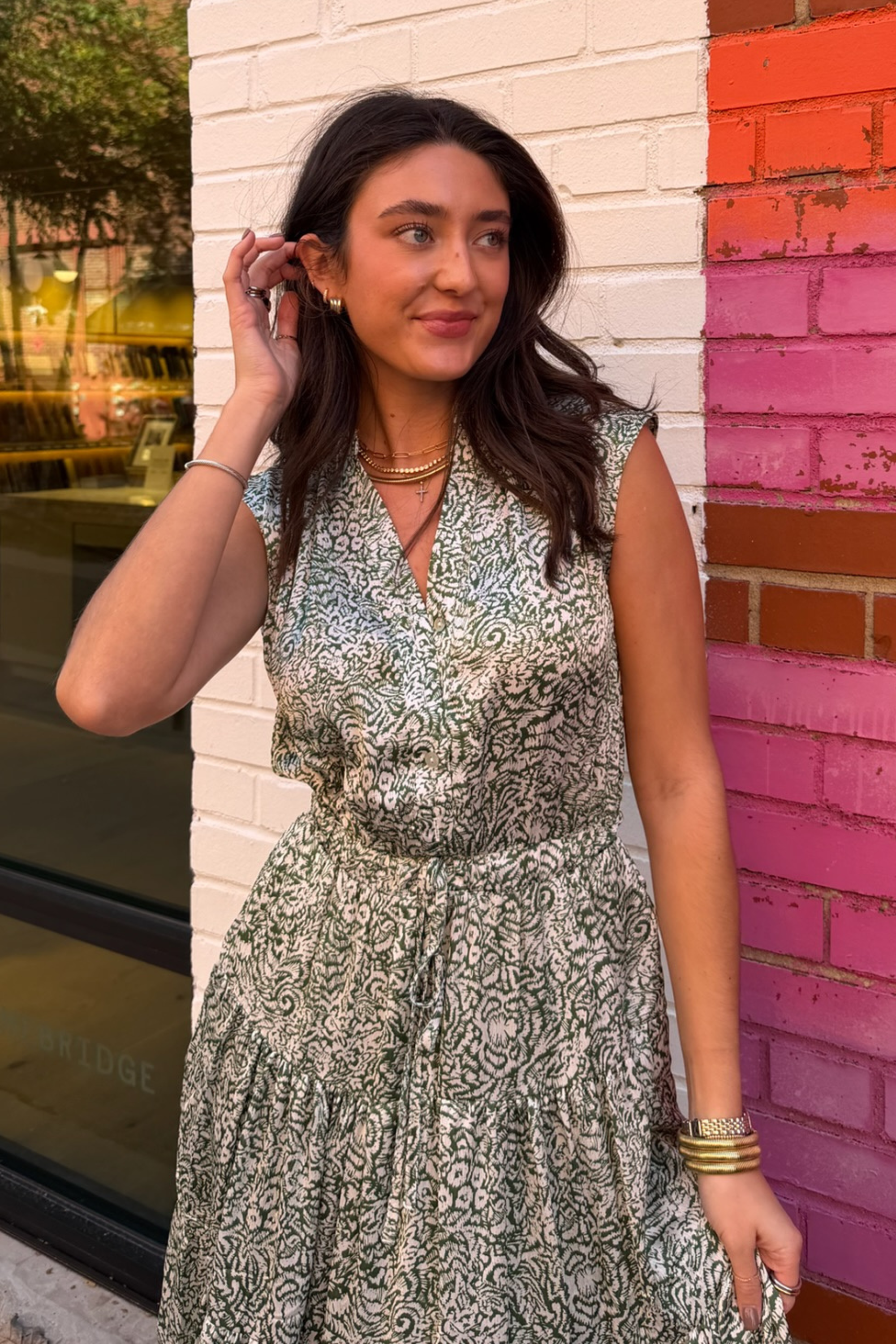 Esther 3/4 Sleeve Blockprint Maxi Dress - Palms Green