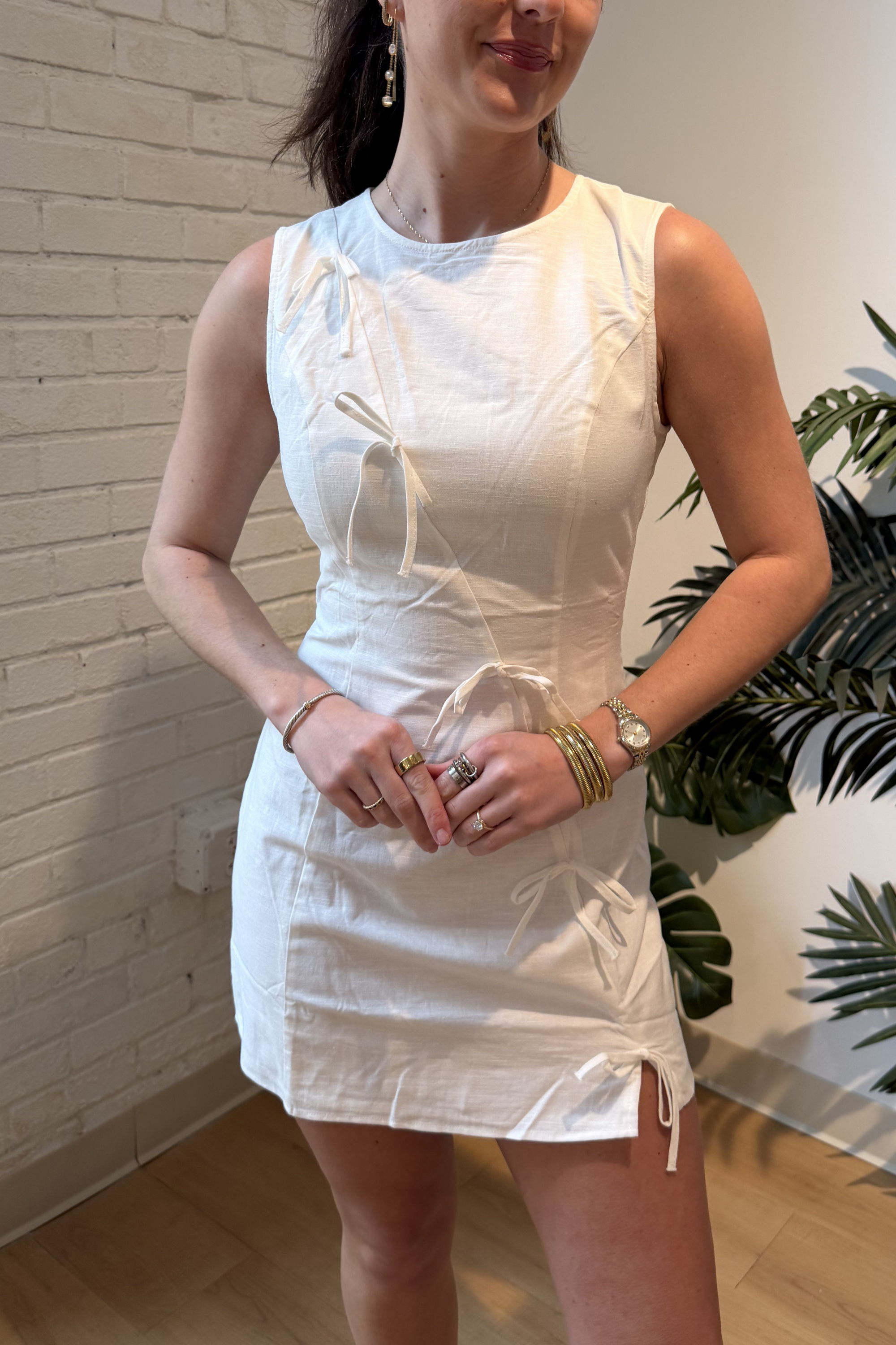 Kate Linen Bow Mini Dress - White