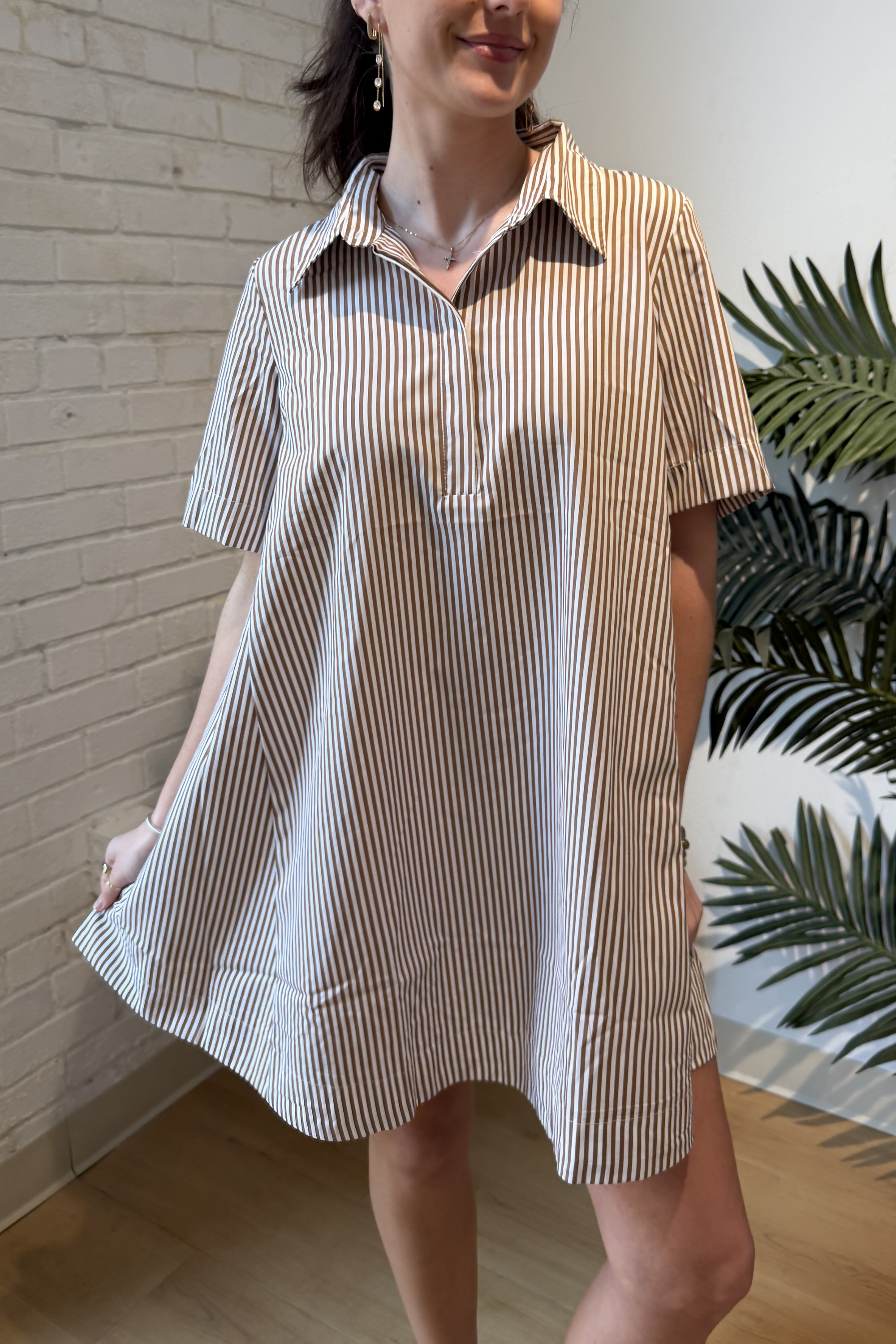 Maisy Stripe Mini Dress - Chocolate/Ivory