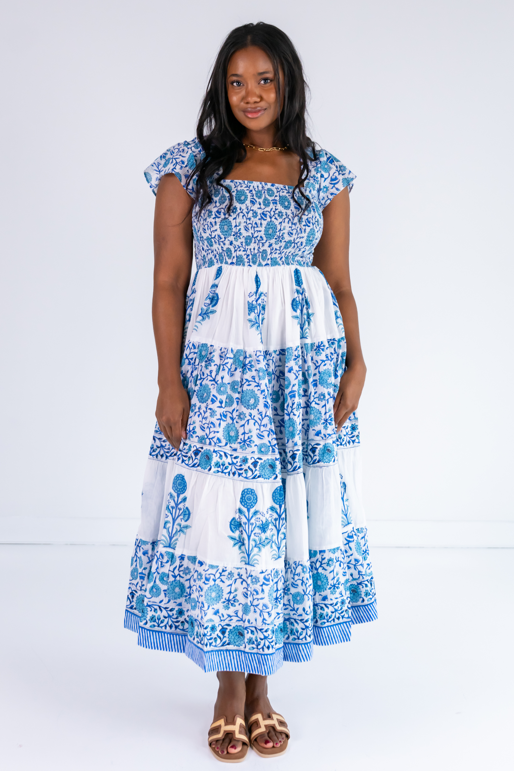 Lil Smocked Maxi Dress - Poppy Mix Blue