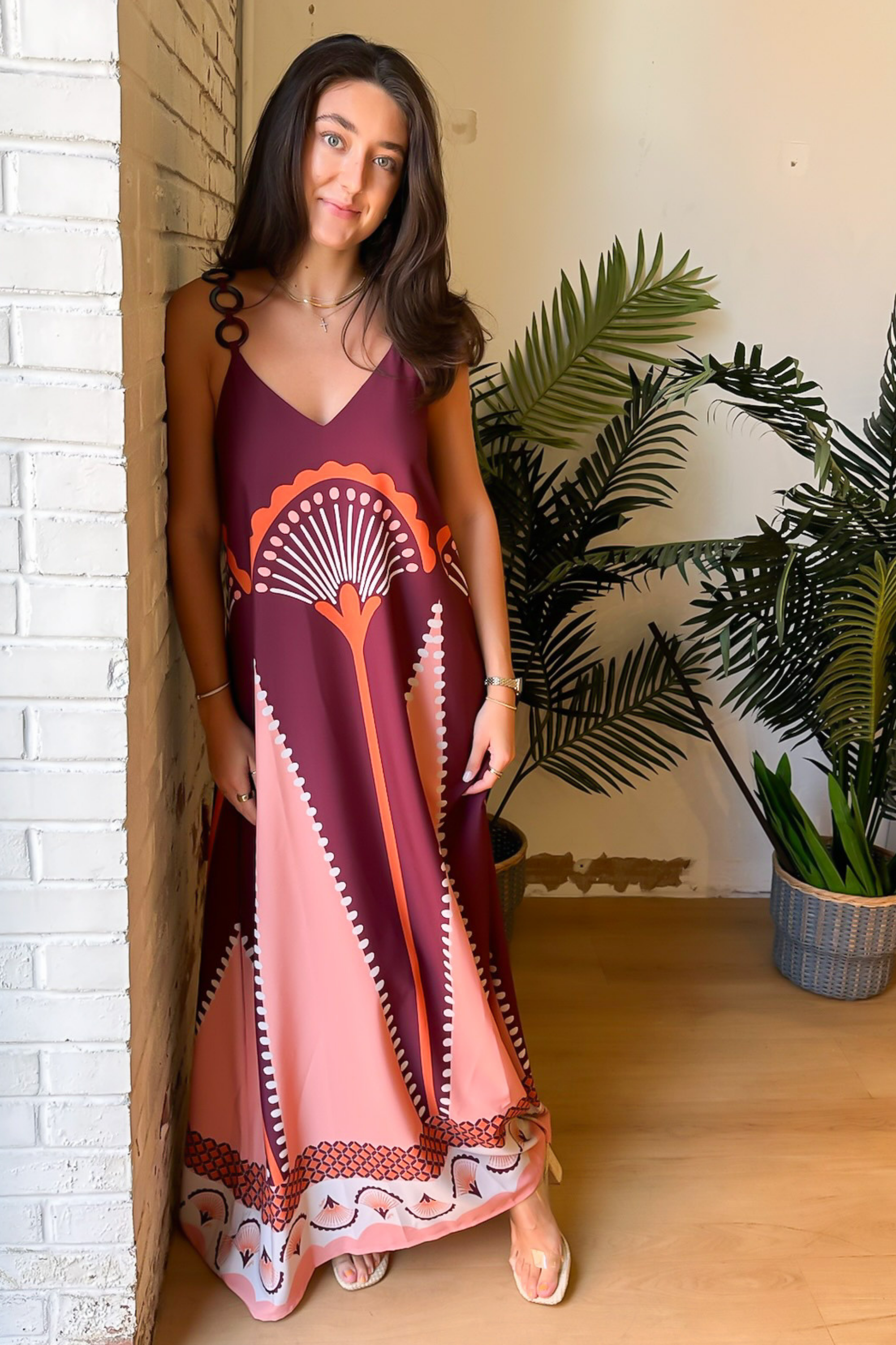 Merci Floral Formal Maxi Dress - Brown/Pink