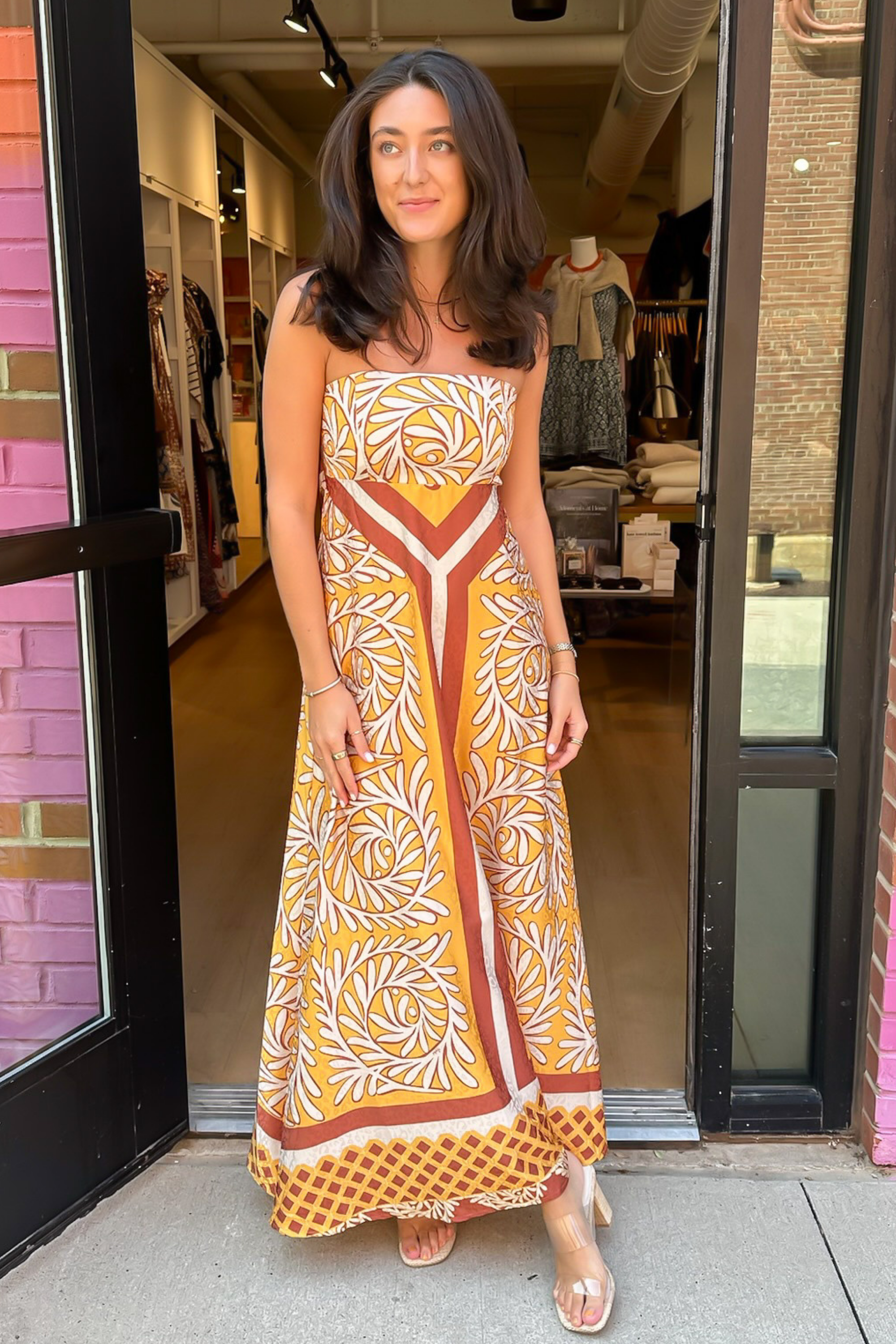 Roma Silk Strapless Maxi Dress - Orange Multi