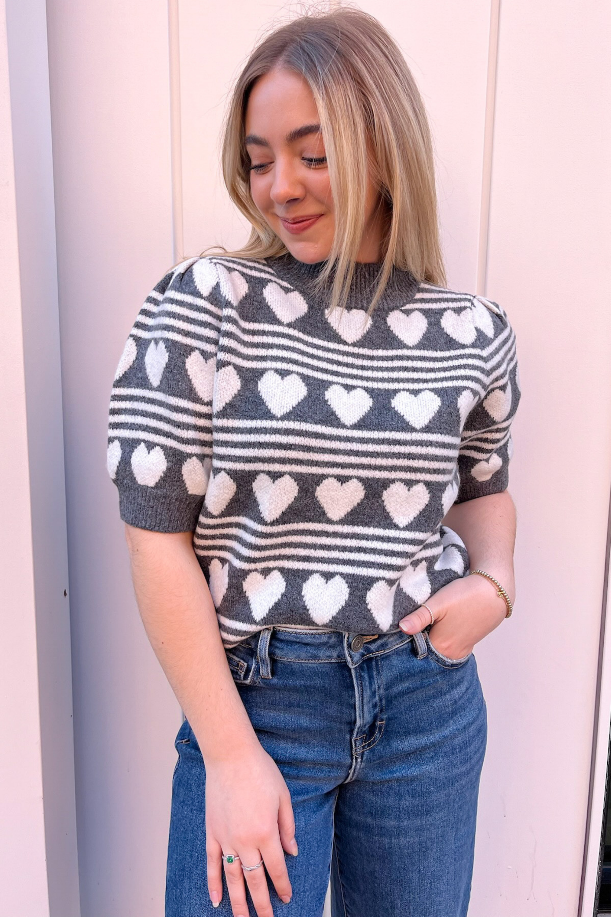 Lovin You Short Sleeve Sweater - Charcoal/White