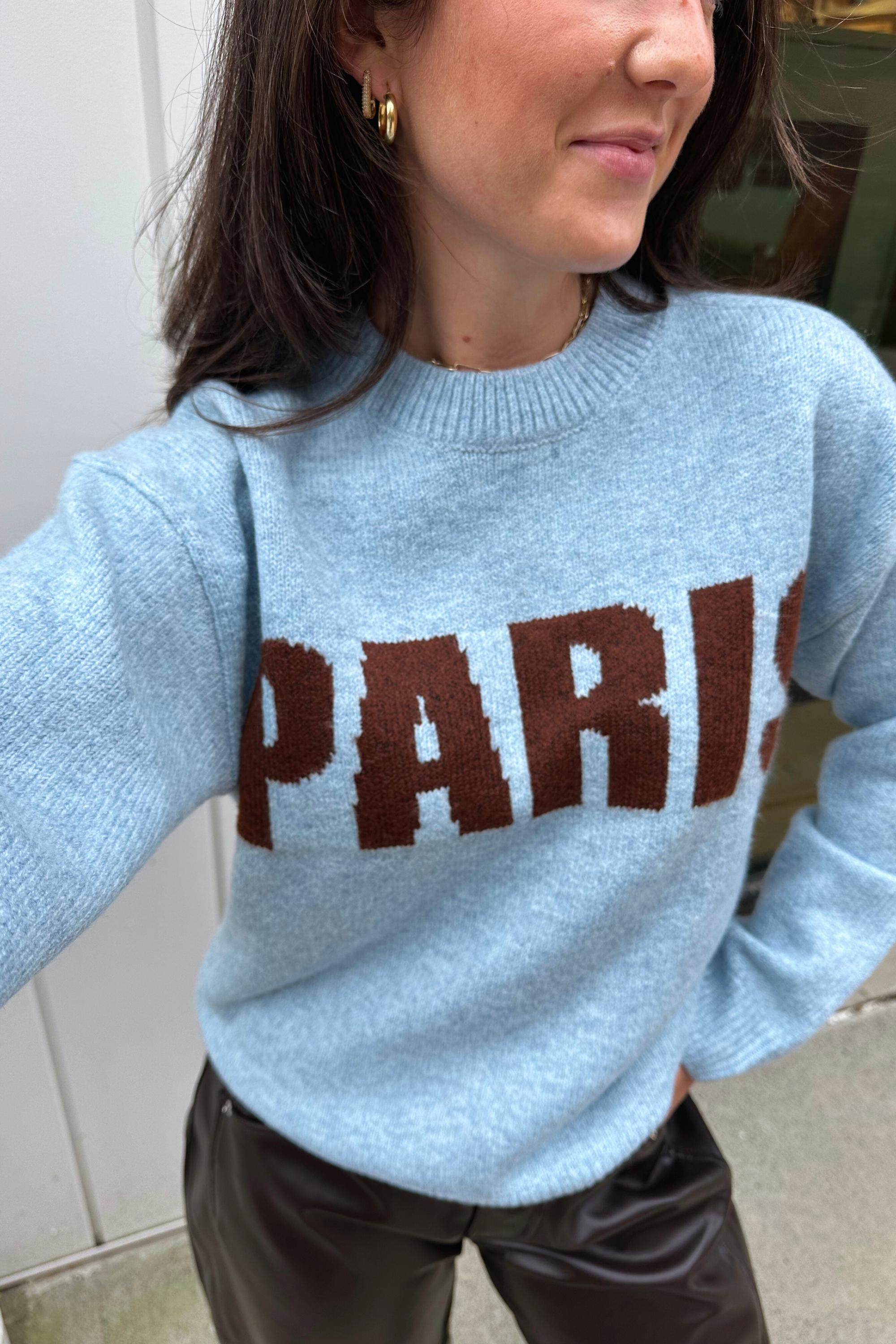 Stay cozy and stylish with this fun Paris Sweater in blue and brown. Featuring a playful "Paris" print, it’s perfect for adding a charming touch to any casual outfit while keeping you warm and comfy all day long.