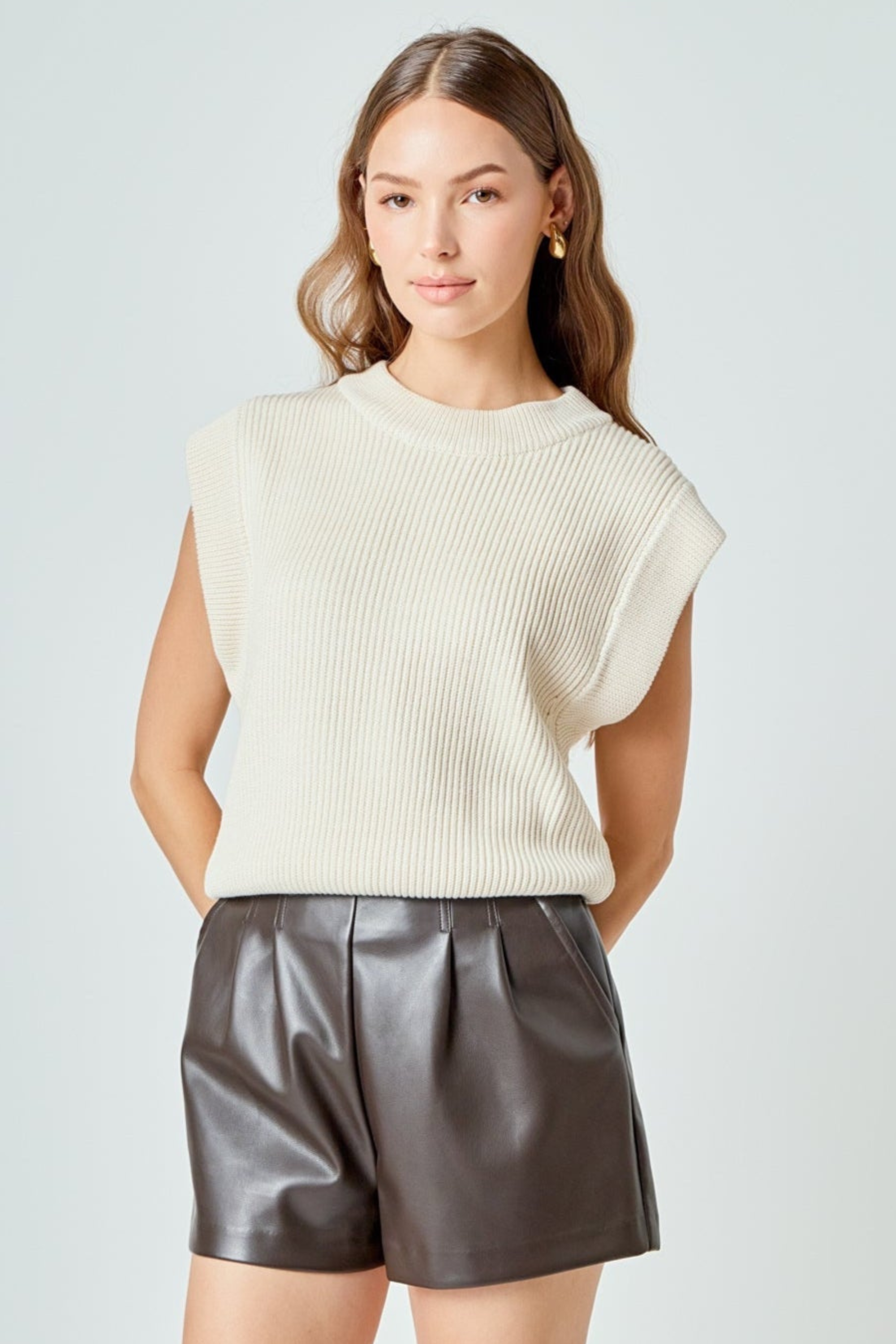 Rachel Roundneck Vest Knit Top - Cream