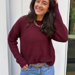 Get ready for fall with the Daphne Cropped Pullover Sweater in a stunning oxblood color. This classic crew neck sweater features a soft, cozy knit that’s perfect for layering or wearing on its own. Its vibrant hue adds a fun pop of autumn warmth to any outfit, making it your new favorite seasonal staple!