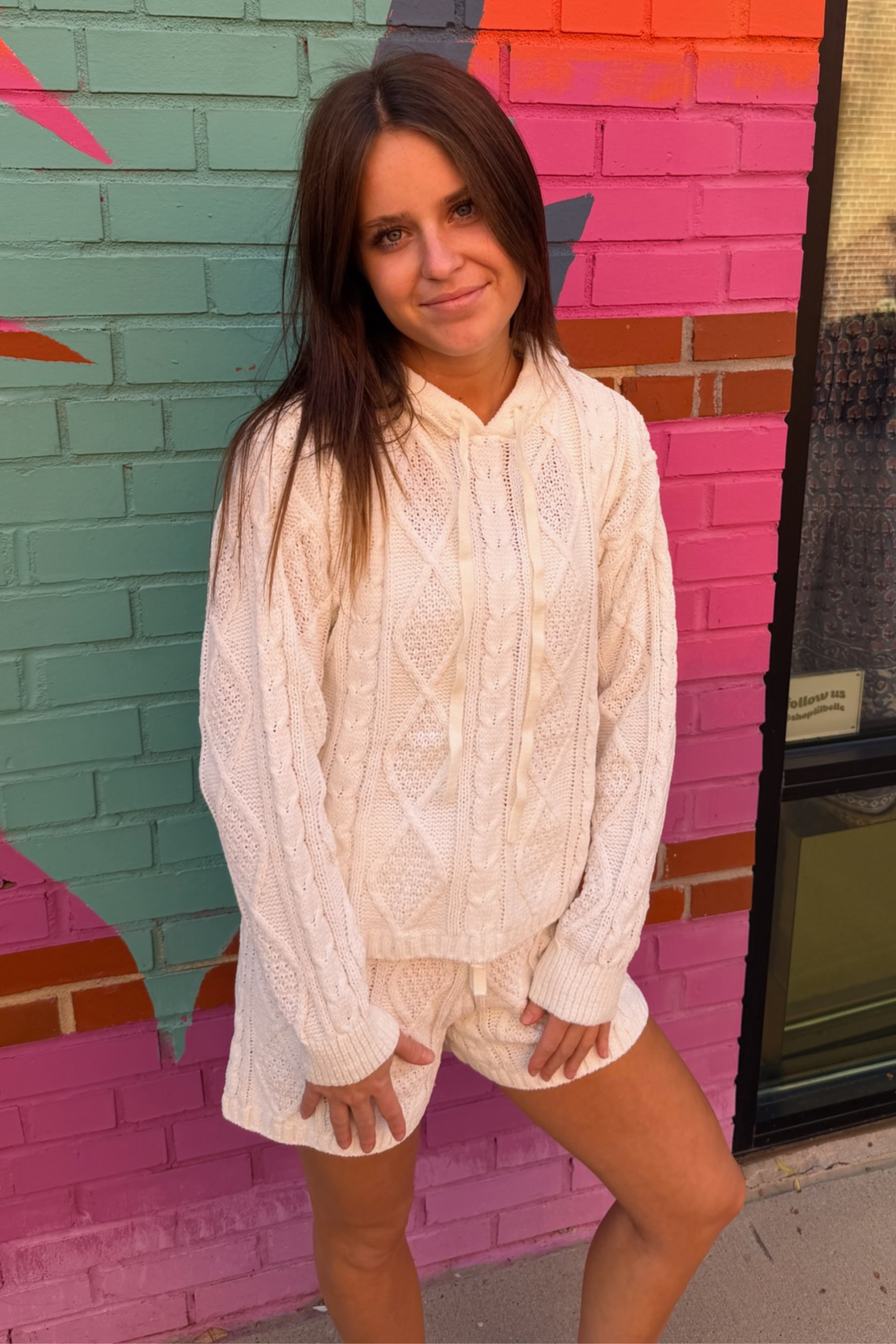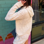 The Sutton Chenille Hoodie Short Set combines the best of both worlds—a luxuriously soft cable knit hoodie paired with matching shorts in a gorgeous egret shade. Perfect for those days when you want to feel like you're wrapped in a cloud while still looking effortlessly chic. Whether you're binge-watching your favorite show, grabbing coffee with friends, or just vibing at home, this set keeps you cozy without compromising on style.