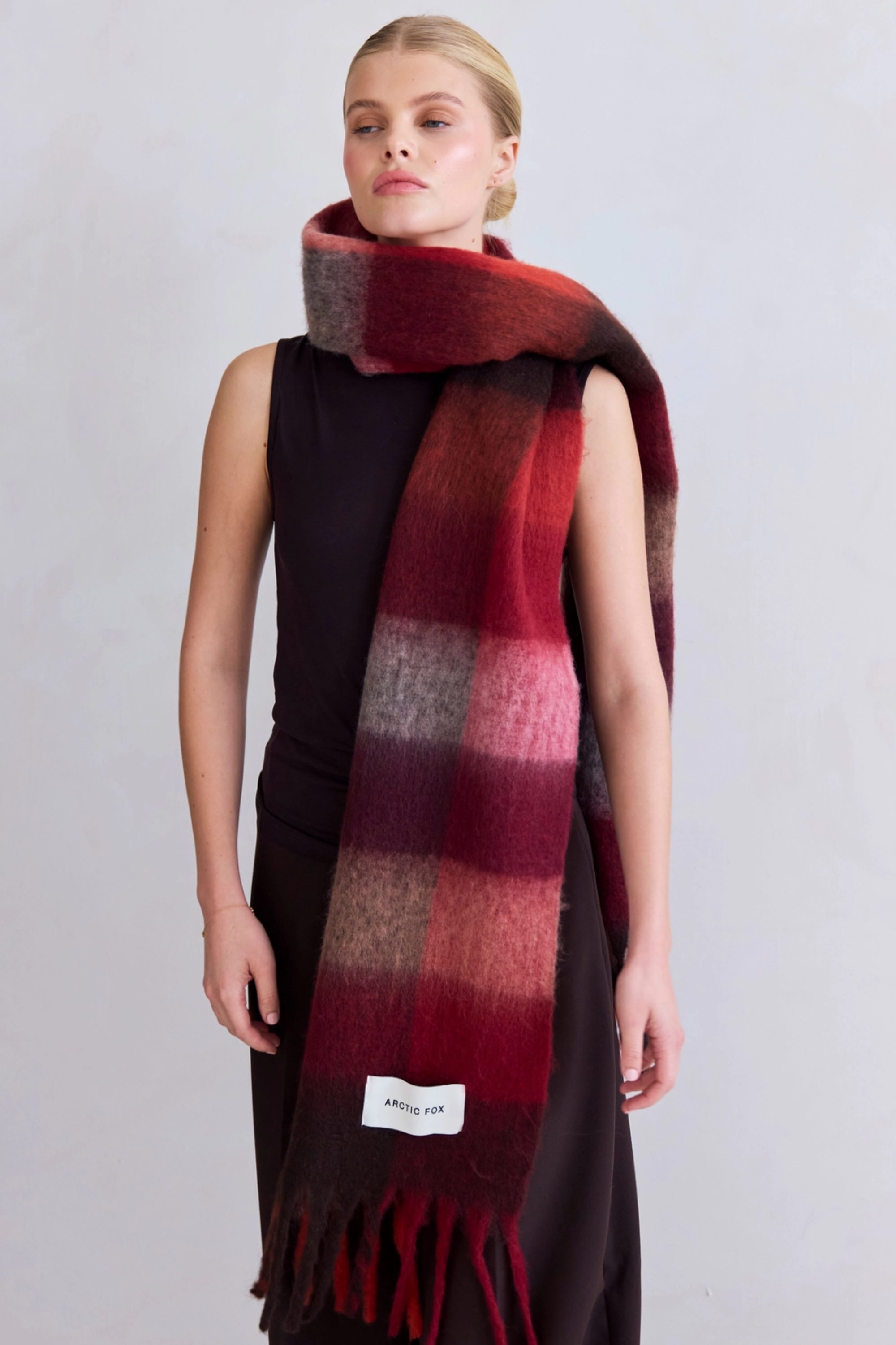 The Reykjavik Scarf, made from 100% recycled materials, features fringed ends and an extra-large silhouette. Brushed an extensive six times compared to the industry standard of four, the result is a thicker, warmer, ‘fluffier’ texture.