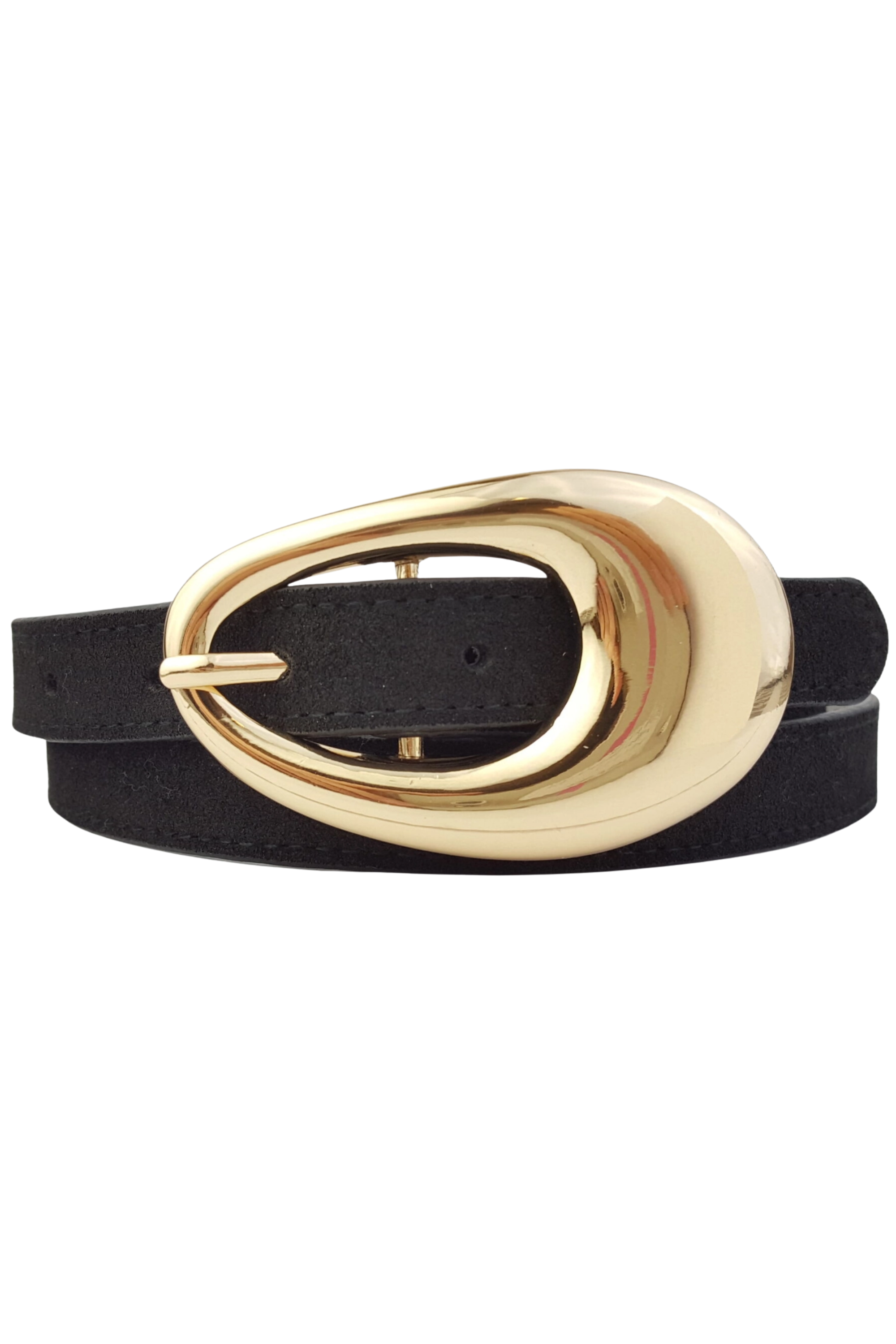 Elevate your everyday look with this bold suede belt featuring a chunky gold tear drop buckle that demands attention. Whether you're cinching a dress at the waist or adding edge to casual wear, this accessory transforms any outfit into something unforgettable.