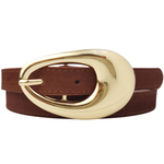 Suede Belt with Gold Tear Drop Buckle - Brown
