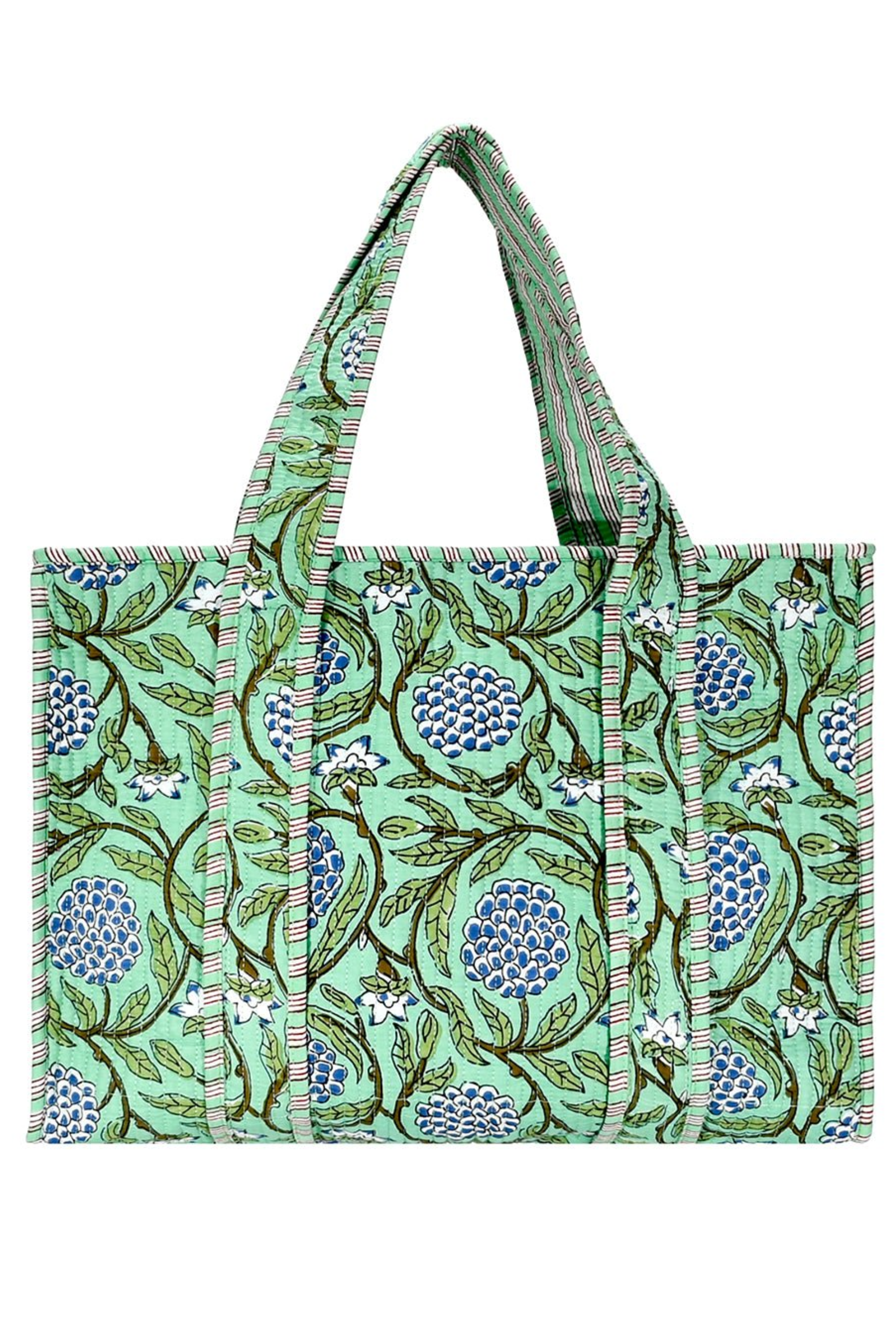 Small Blockprint Tote - Green Blossom