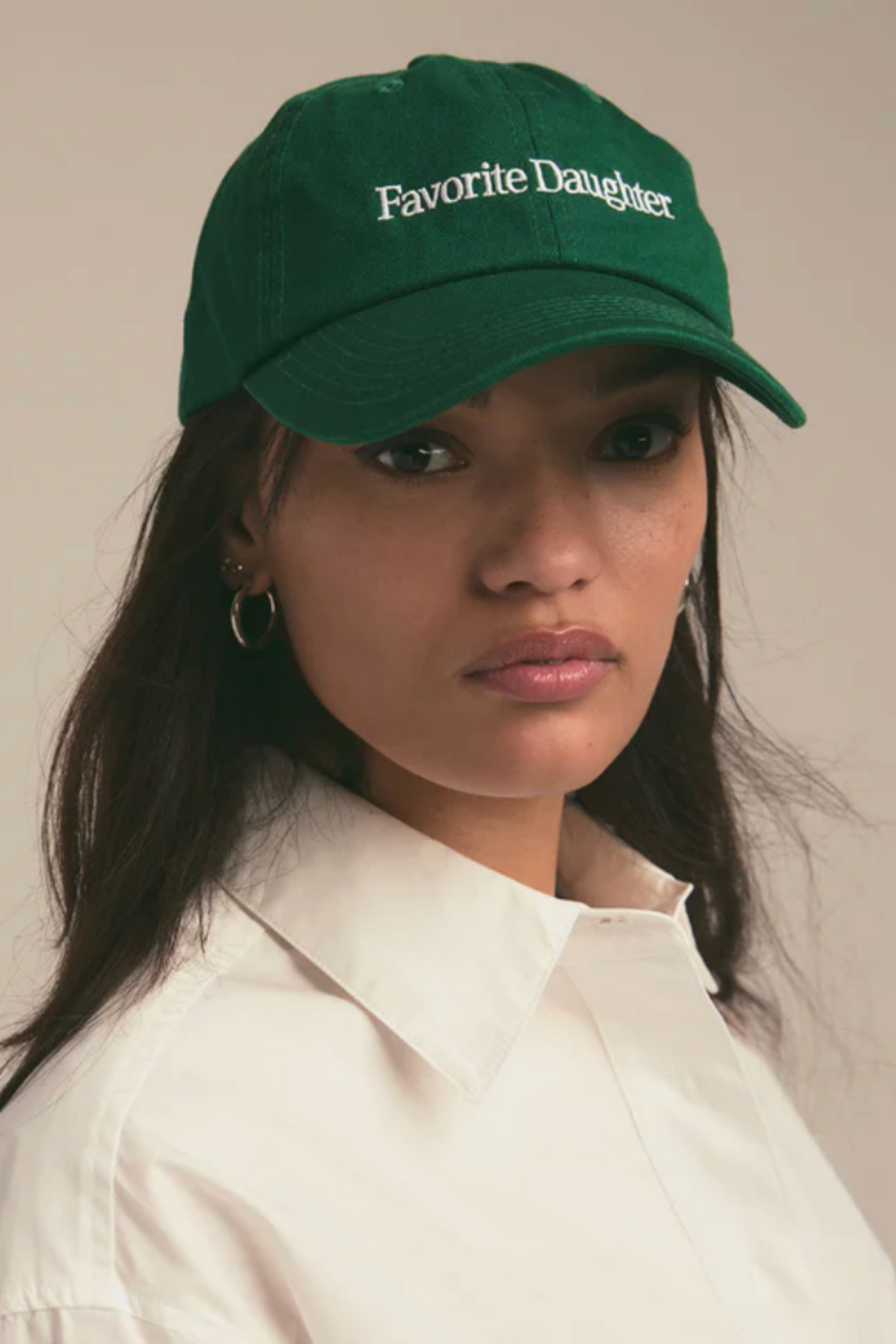 Messy hair, don't care. Our classic cotton hat that somehow makes everything feel intentional. Unstructured, effortless and finished with Favorite Daughter embroidery.