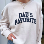 Stay cozy and cool in the Dad's Favorite Sweatshirt. This soft heather oatmeal crewneck proudly declares your top spot with playful style and comfortable warmth, perfect for relaxing or casual outings. It’s the ultimate go-to for the dad who knows he's everyone's favorite.