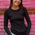 This cozy ribbed long sleeve top in black is your new go-to for fall layering. Soft and comfy, it pairs effortlessly with everything in your wardrobe, from jeans to skirts. Whether dressing up or keeping it casual, this essential basic adds a stylish touch to any outfit.