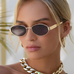 Elevate your accessory game with Soho small oval sunglasses. These unique, stylish and fashion forward shades are perfect for anyone who wants to make a statement with their sunglasses.The oval shape of these women's sunglasses adds a touch of retro charm, while the small size and flat lenses gives them a modern twist.