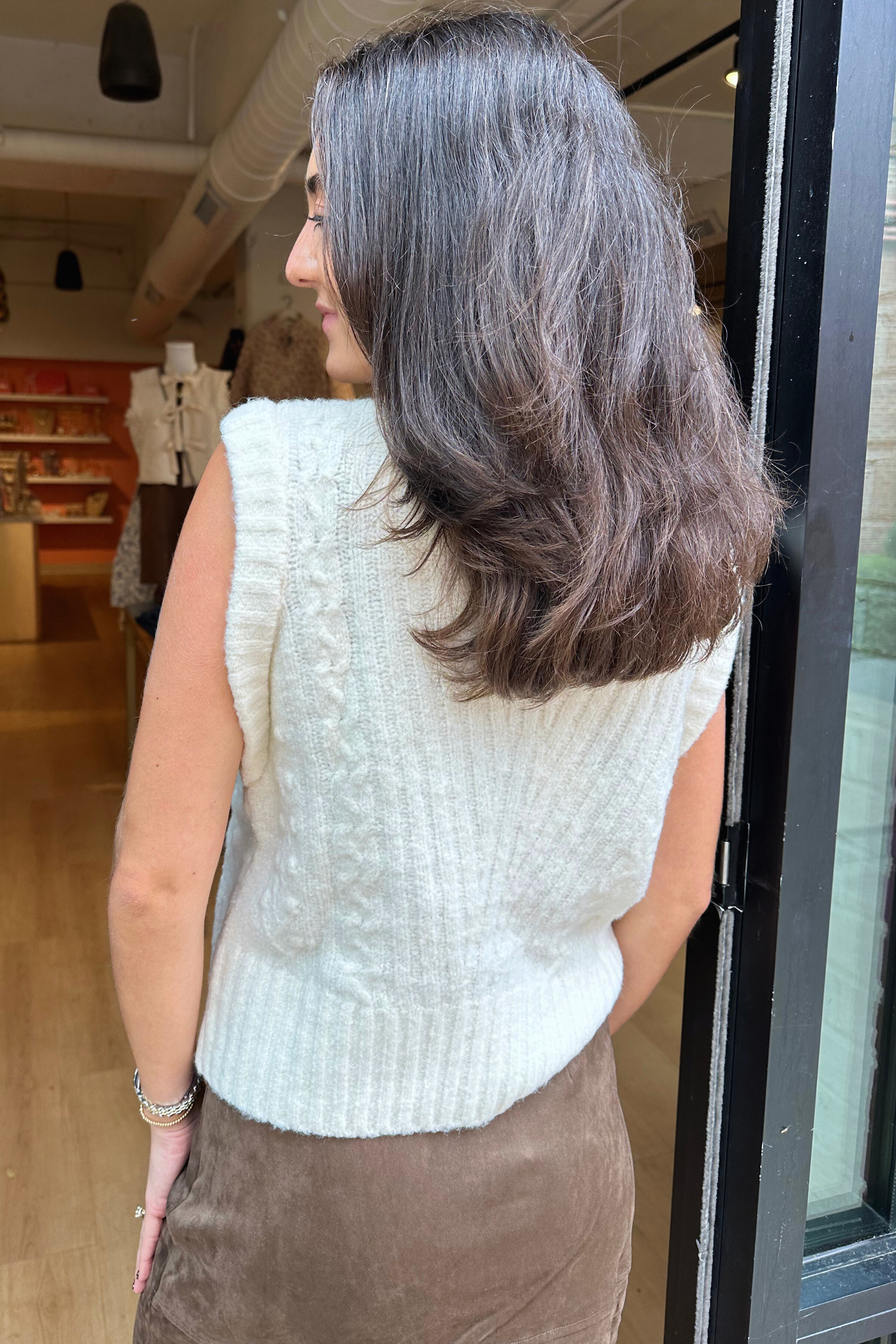 Stay cozy and stylish in the Emma Knit Muscle Vest in Ivory! This super soft sweater vest is perfect for those Carolina fall days when you want warmth without the bulk of a big sweater. Its cute, sleeveless design layers effortlessly over your favorite tops, adding a playful touch to any outfit while keeping you comfy all day long.