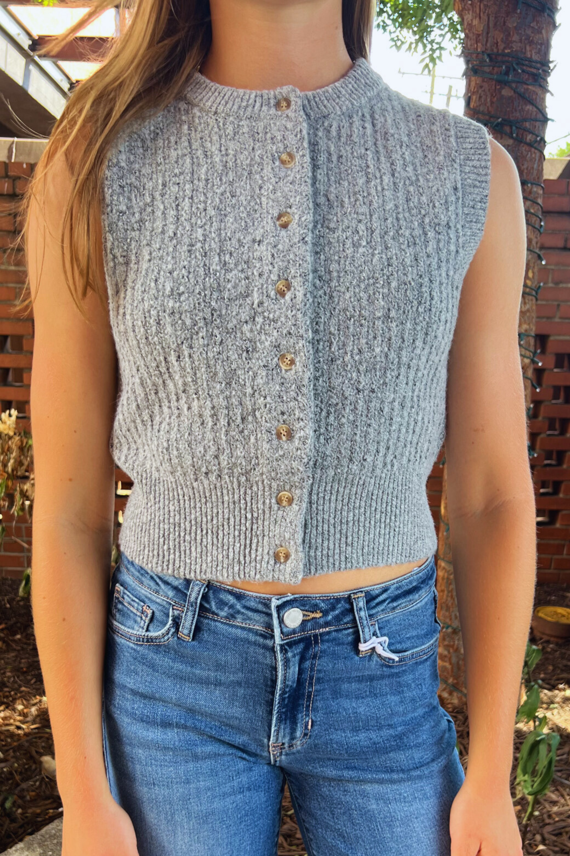 Transition into fall with the Taylor Cropped Sweater Vest in Light Grey. This fun, fuzzy vest features buttons all the way down for easy layering and a playful cropped fit that adds a trendy twist to any outfit. Perfect for adding a soft, warm touch to your look while keeping things light and breezy.