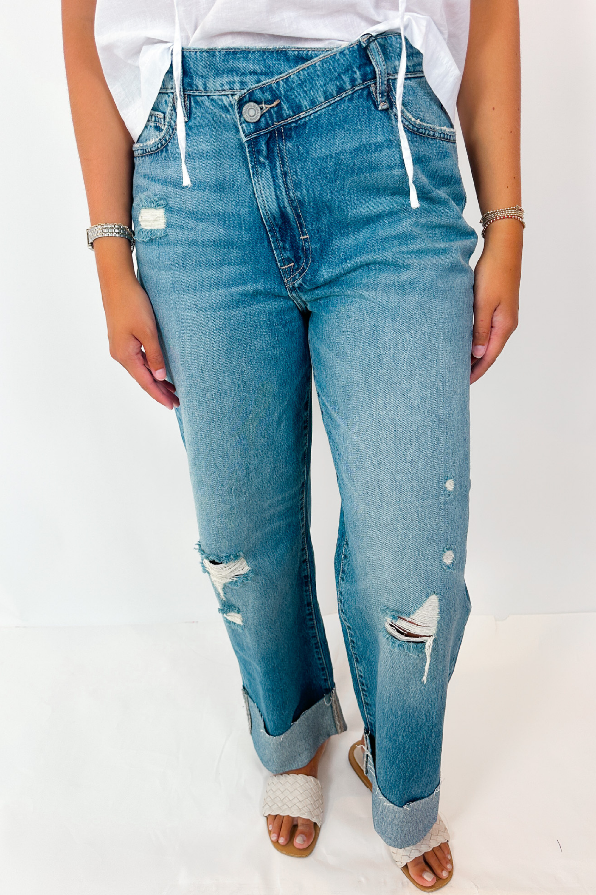 Logan 30" Inseam High Waist Crossover Dad Jean - Medium Dark