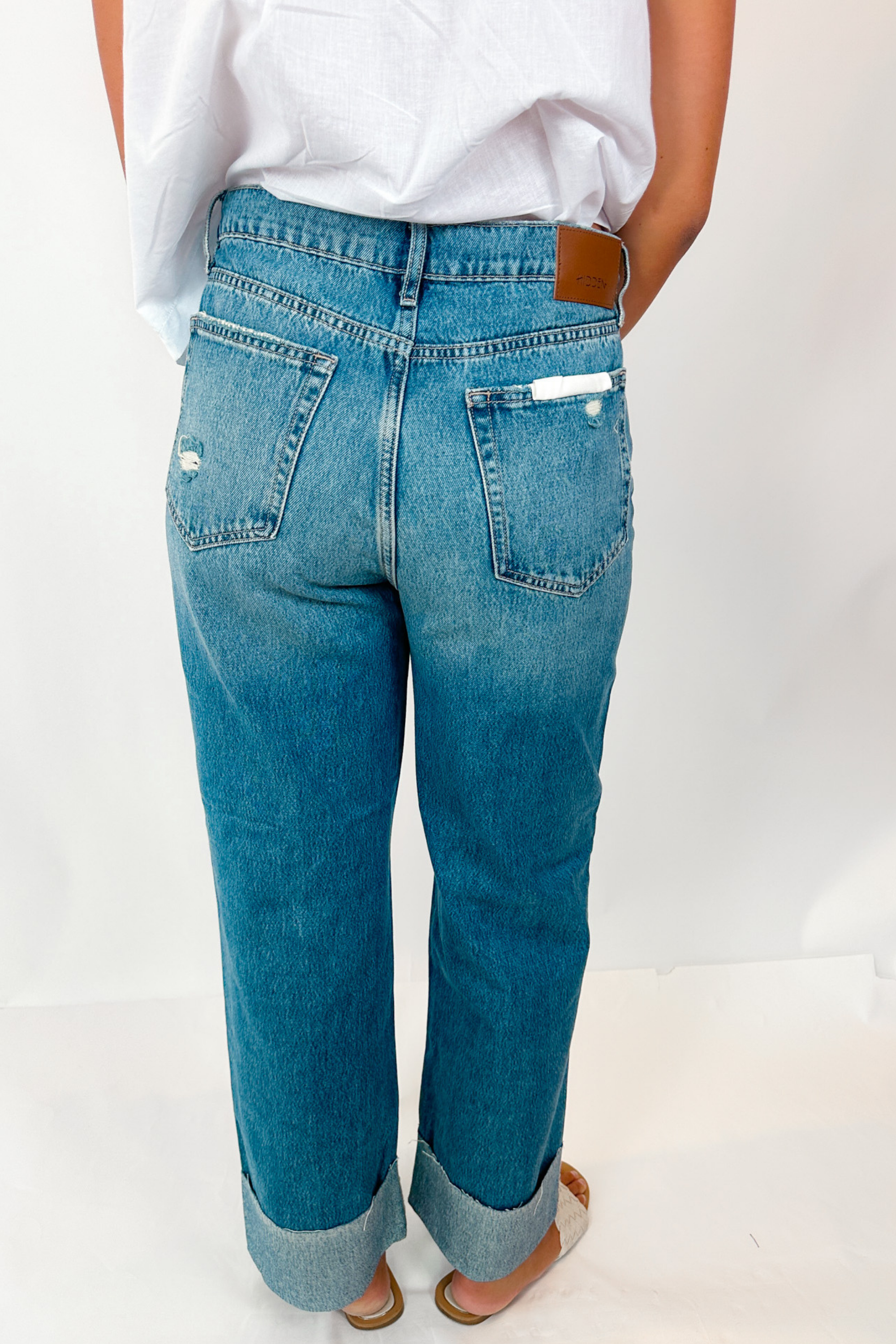 Step into effortless cool with the Logan 30" Inseam High Waist Crossover Dad Jean. Featuring a flattering high-waisted fit and a trendy crossover detail, these jeans bring a fresh twist to your casual look. The medium dark wash adds versatile style, while the cuffed bottoms give a laid-back vibe perfect for any adventure. Comfortable and chic, these jeans are your new go-to for fun, everyday fashion.
