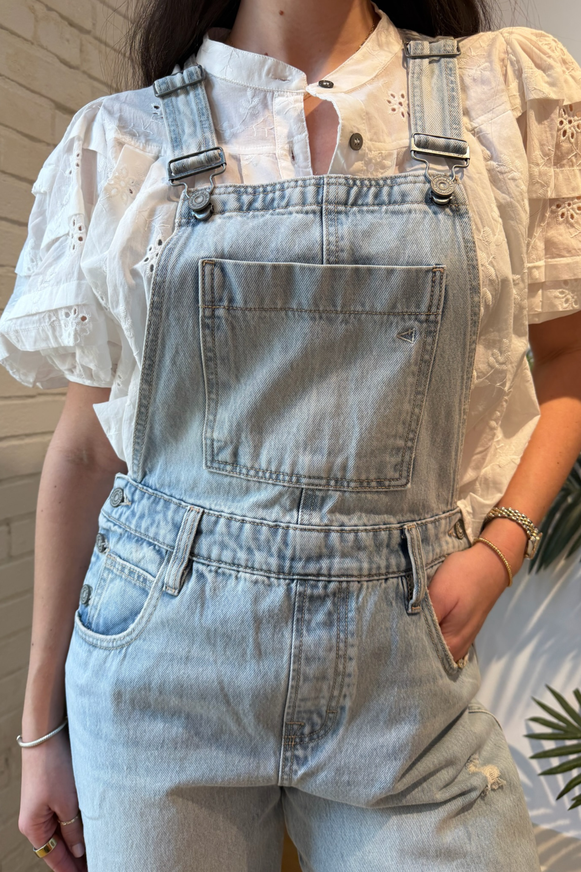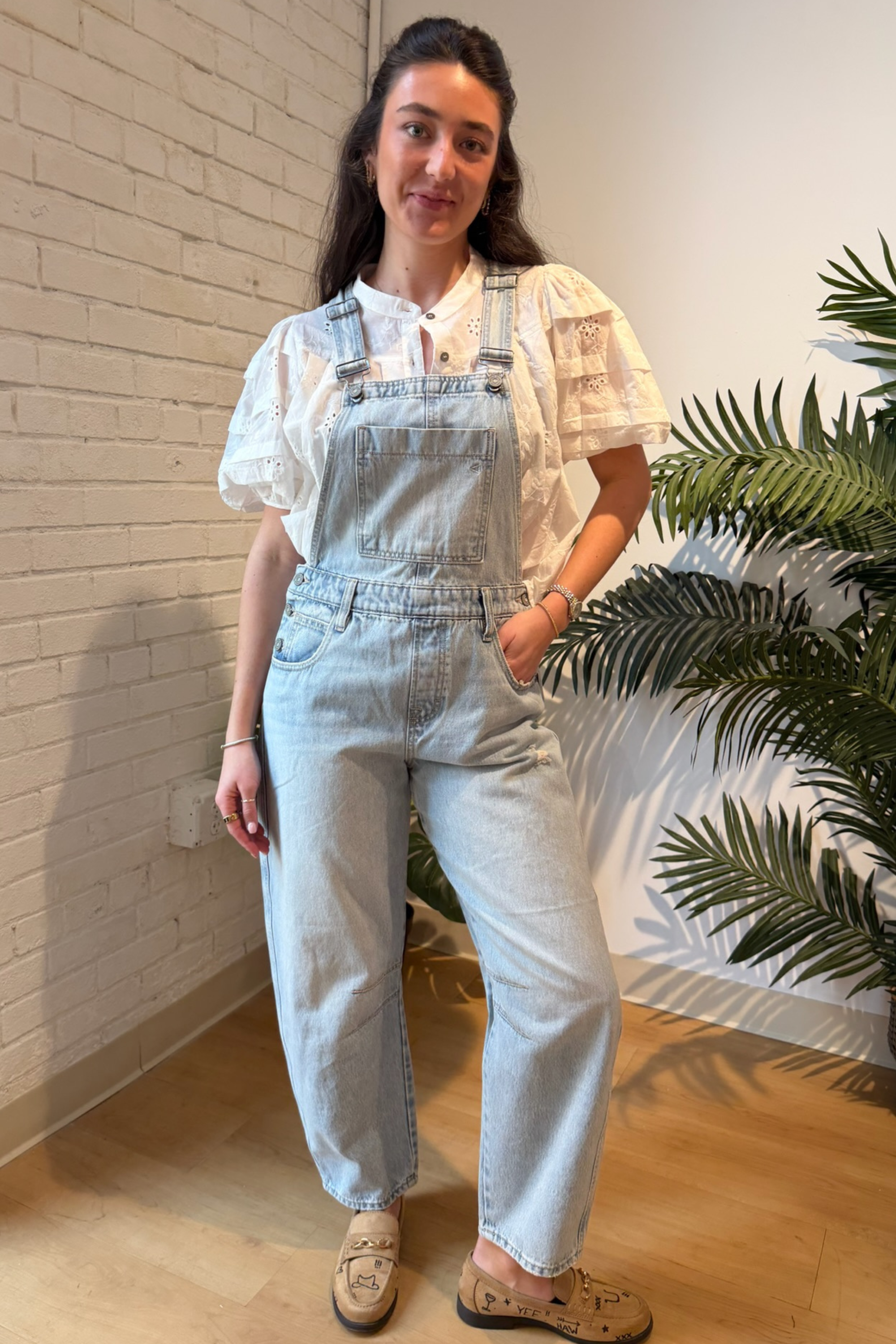 These adorable barrel-leg overalls are the ultimate trendy staple! Crafted in light denim, they feature a flattering silhouette that's perfect for effortless, playful styling. The roomy barrel cut offers comfort and movement while keeping you looking totally on-trend. Pair them with your favorite crop top or oversized tee for an instant vibe. Whether you're running errands or hanging with friends, the Dylan overalls deliver that cute, casual-cool energy every time.
