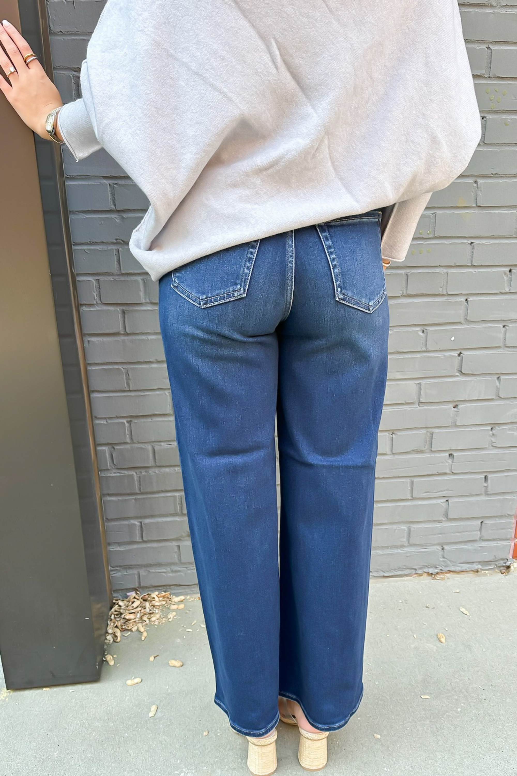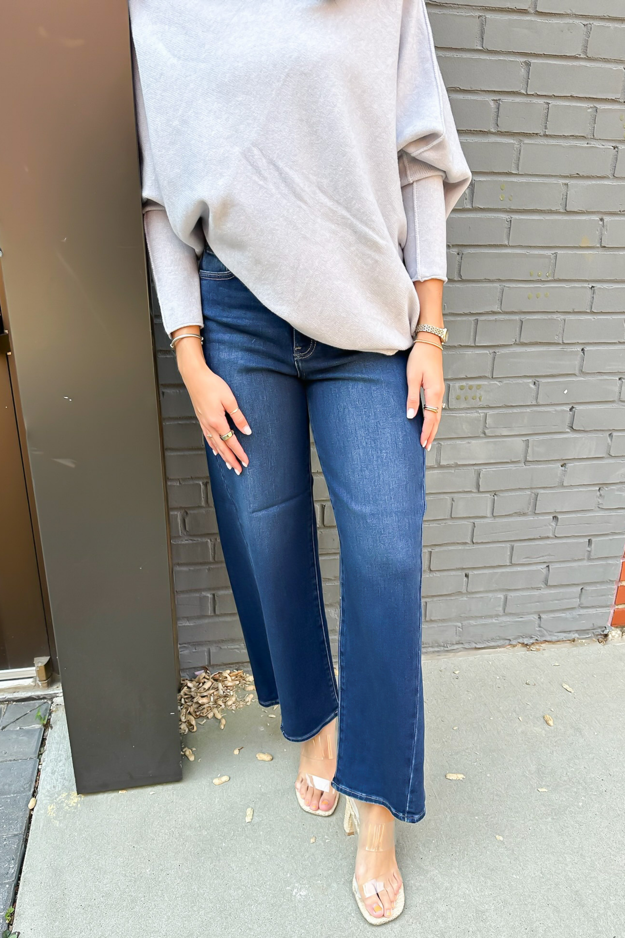 Elevate your style with the Gia Bootcut High Rise Wide Leg in Dark Denim – the perfect fit for taller girls! Designed to flatter long legs, these jeans offer a comfy high rise and a wide leg that flows effortlessly. They add a playful yet chic vibe to any outfit, making you stand out with every step. Perfect for those who love a blend of comfort and style with a fun twist!