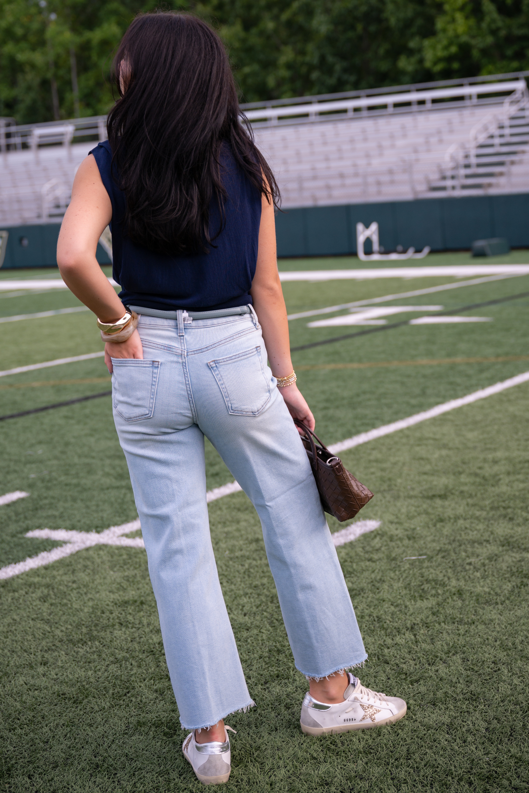Step into comfort and style with the Mary Wide Leg Jean in light denim. These full-length jeans feature a trendy wide-leg cut and stretchy fabric that moves with you, perfect for all-day wear. The light wash adds a fresh, casual vibe to any outfit, making them your new go-to for effortless cool.
