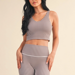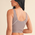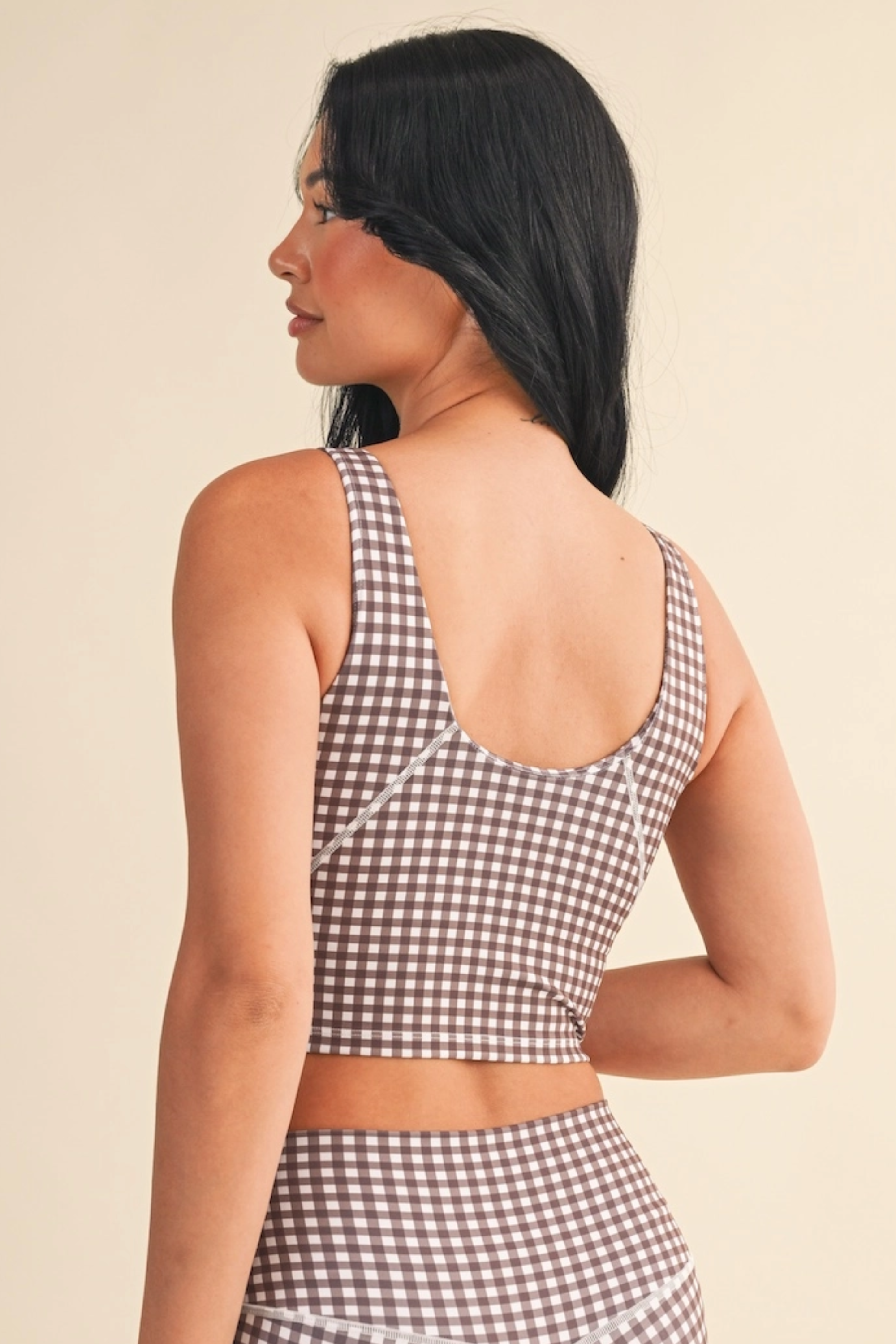 Step into style and comfort with the Grace Cropped Athletic Tank in Brown Gingham. Designed to flatter and move with you, they provide a snug fit that keeps you confident from warm-up to cool down.