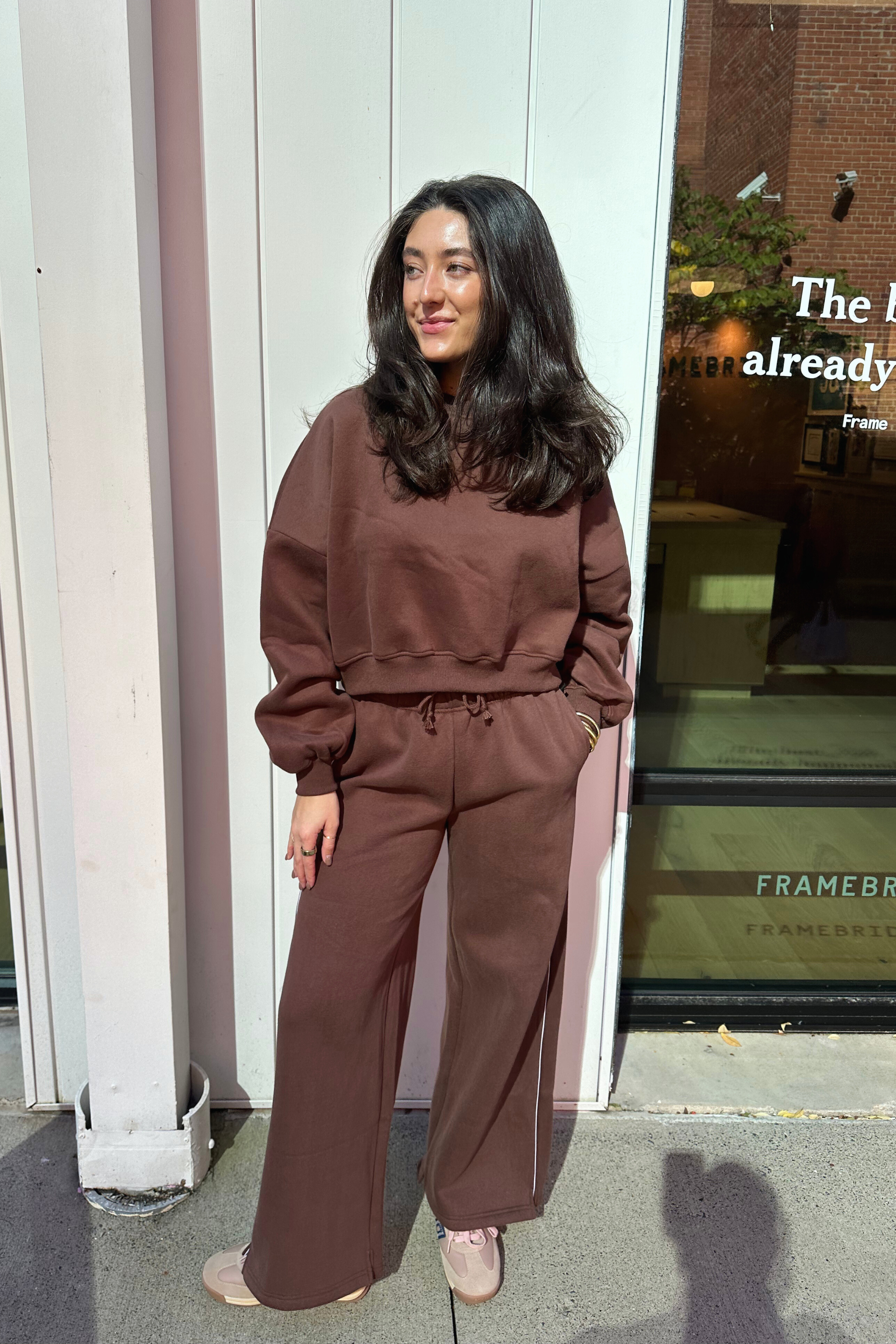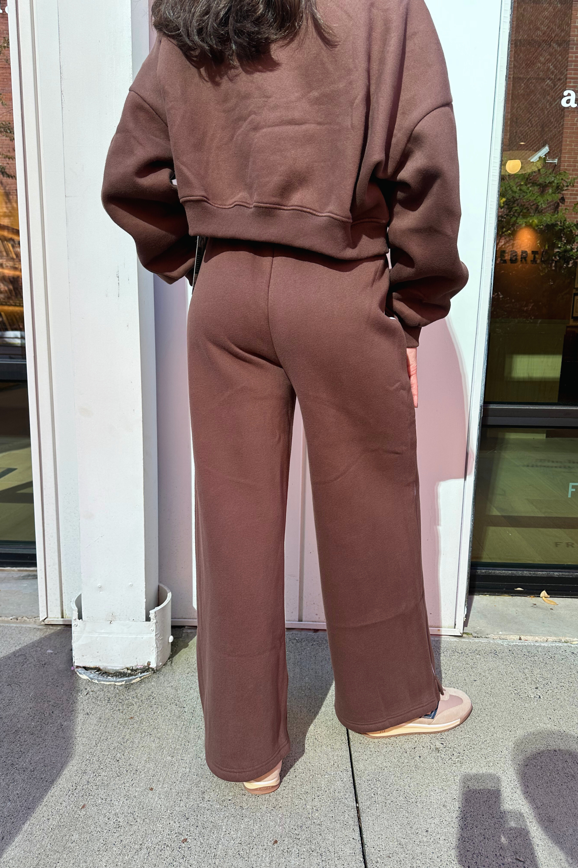 Teddi Fleece Wide Leg Sweatpants - Chocolate