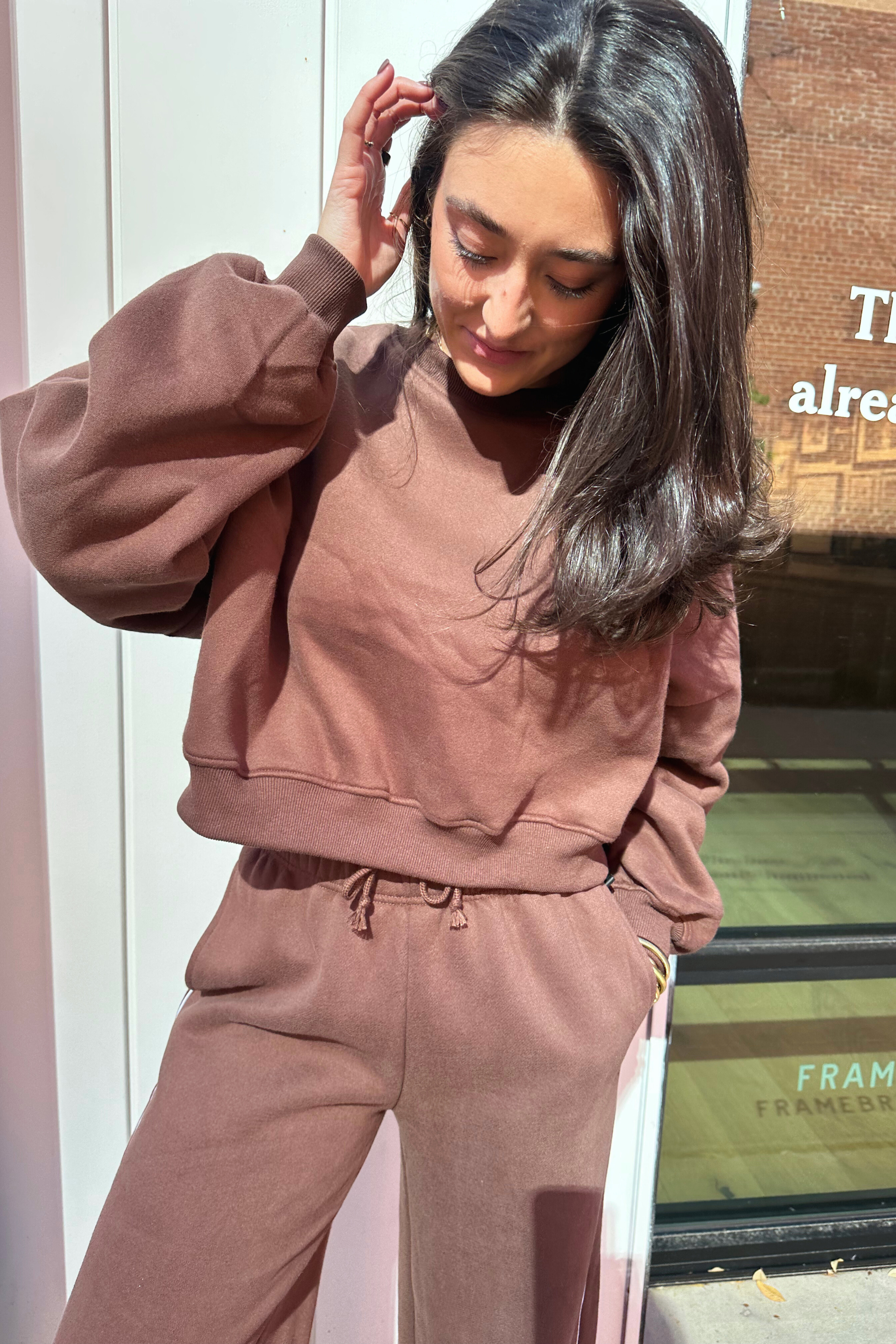 Teddi Fleece Crewneck Sweatshirt - Chocolate