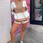 Salli Stripe Half Zip-Up Top & Shorts Set - Taupe