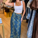 Elevate your style with the Luana Silk Maxi Skirt in vibrant Green. This sophisticated satin skirt features a flattering A-line silhouette that moves beautifully whether you're dressing up for a night out or keeping it casual for daytime fun. Its silky sheen and playful color make it a standout piece that's as versatile as it is chic. Add a little twirl to your wardrobe!