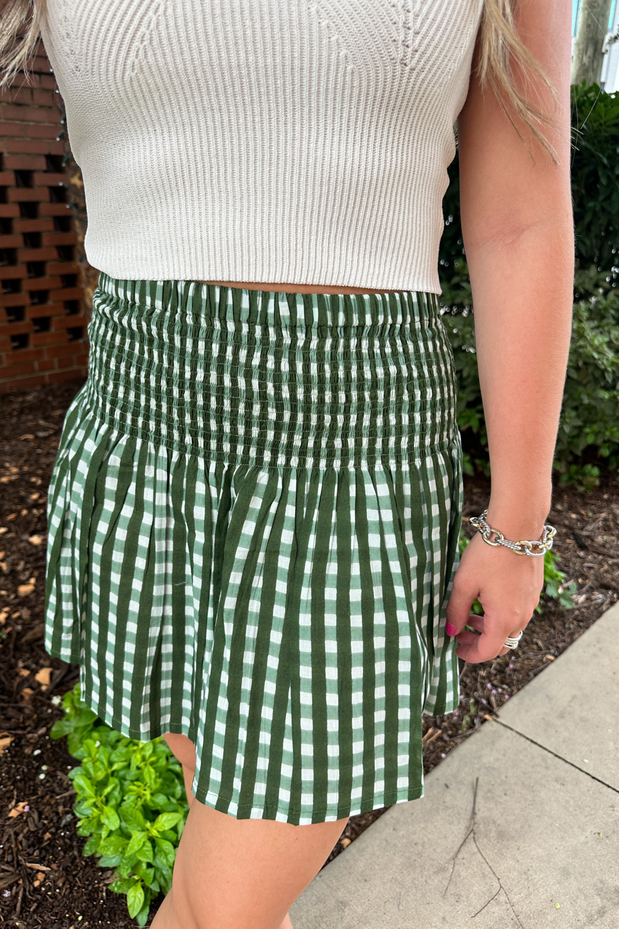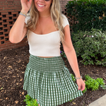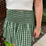 Sandy Smocked Mini Skirt - Gingham Olive