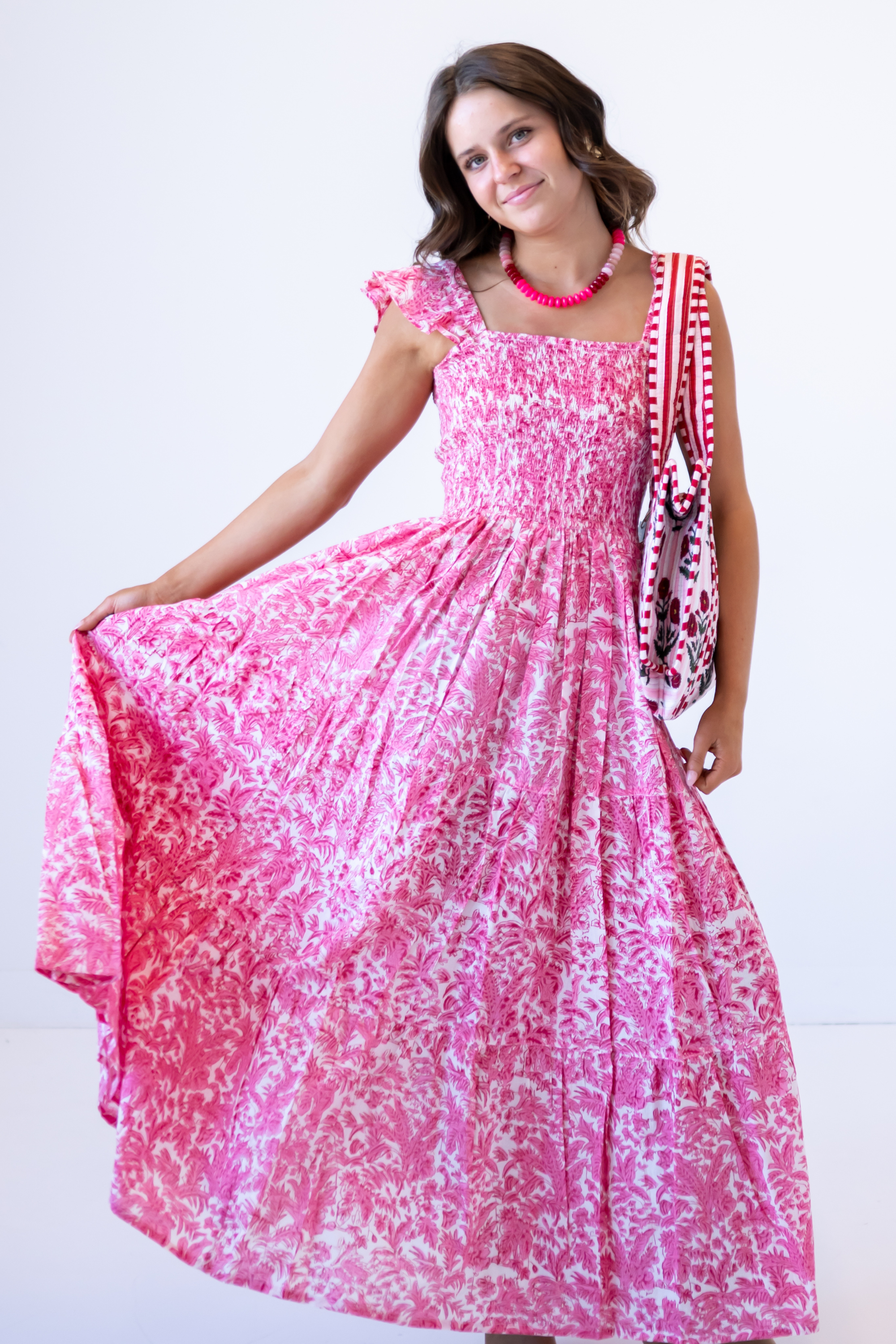 Meet the Erin Tie Back Maxi—your new vacation essential! This gorgeous tie-back design features a stunning bow detail that's equal parts elegant and playful. Perfect for beach days, resort dinners, or anywhere adventure calls, the Erin brings that signature Lilbelle charm in a flowy maxi silhouette. If you're obsessed with our Lilbelle pieces, you'll absolutely love this one. Pack it, wear it, love it.