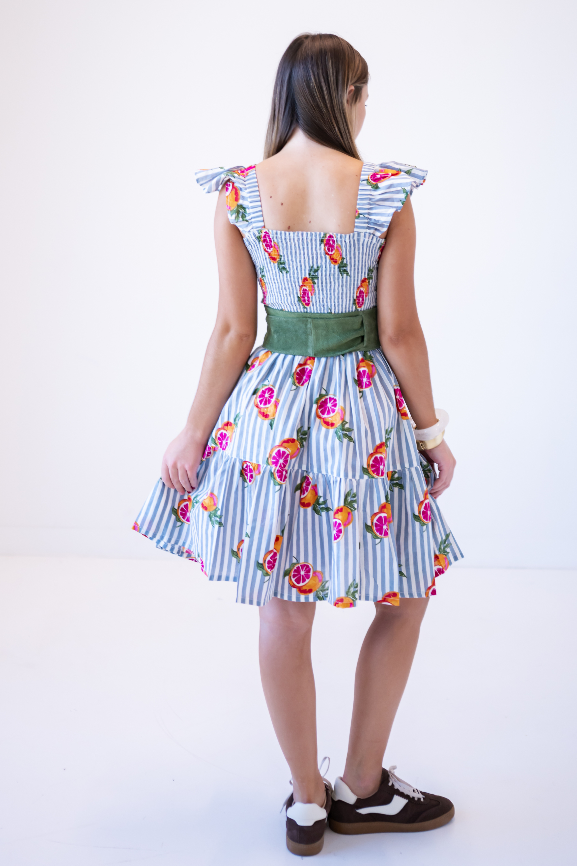 Charlie Smocked Mini Dress - Grapefruit Stripe Blue
