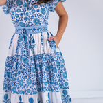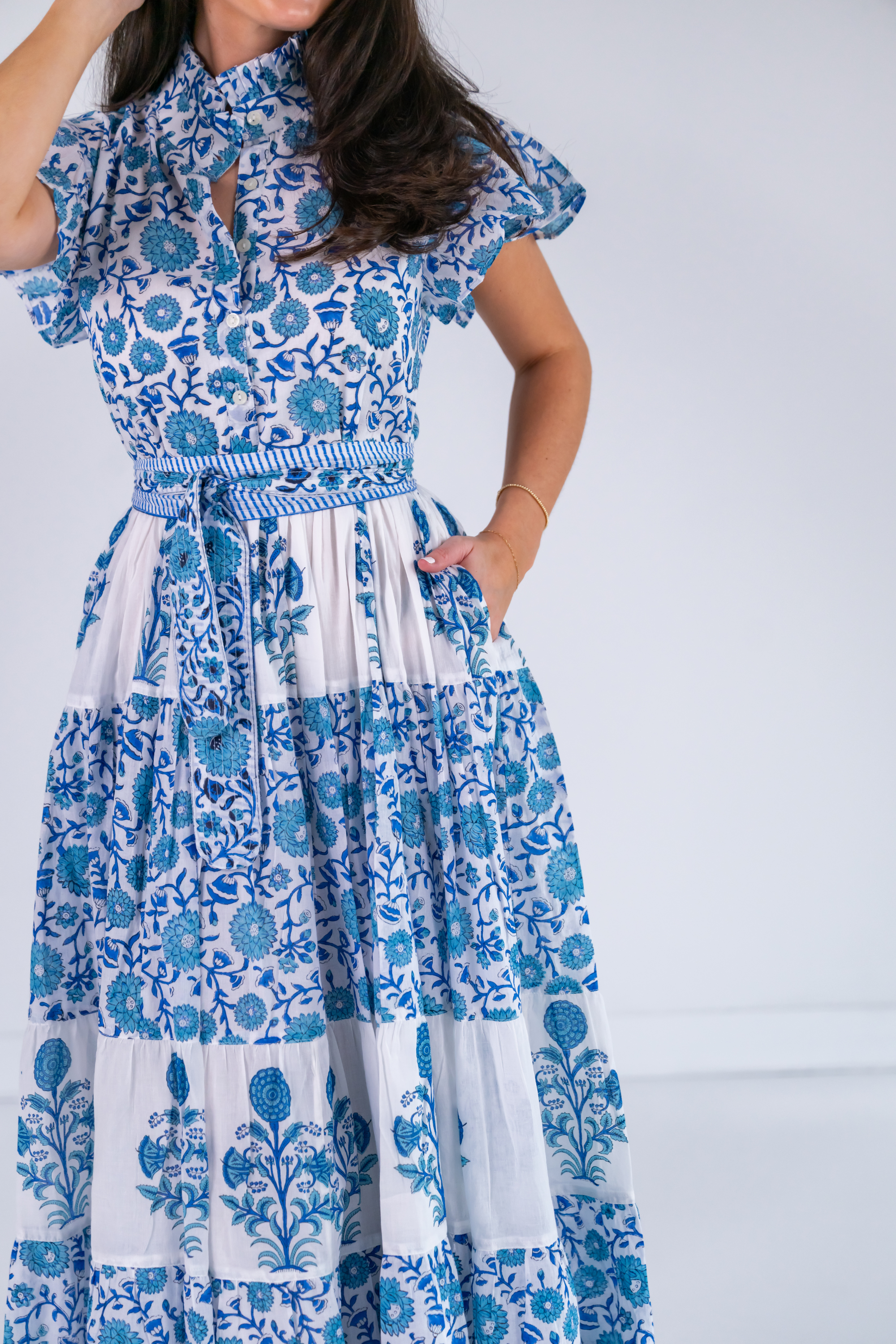 Louise Flutter Sleeve Blockprint Maxi Dress - Poppy Mix Blue