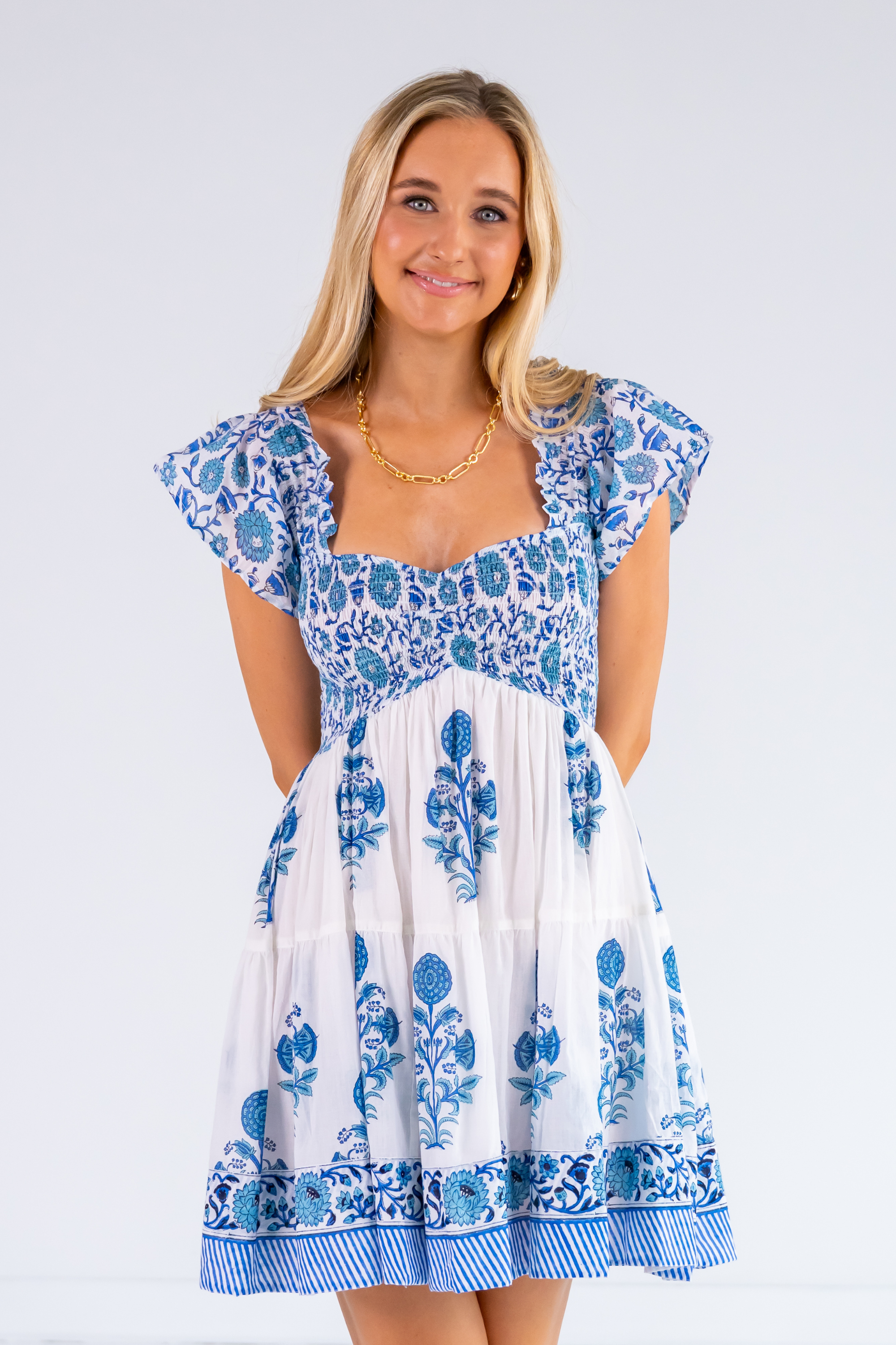 Abby Sweetheart Mini Dress - Poppy Mix Blue